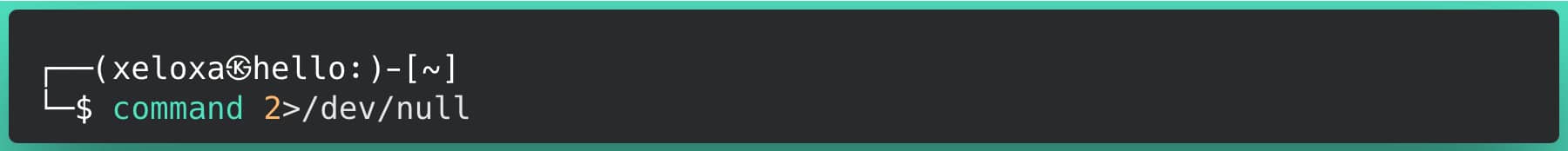 This means that when this redirection is used after any command, our errors (STDERR - 2) are redirected to /dev/null, i.e., to an irretrievable void (discarded).