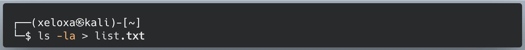 The output of the ls -la command is not written to the screen. Instead, it's written to the file named list.txt. If the file already exists, its old content is lost.