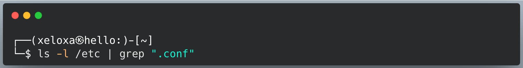 In this example, the files in the /etc directory are listed, and this list is written to STDOUT. Then, using |, the STDOUT of the ls command is taken and written as input (STDIN) to the grep tool. Subsequently, grep filters this input and writes its own STDOUT (to the screen).