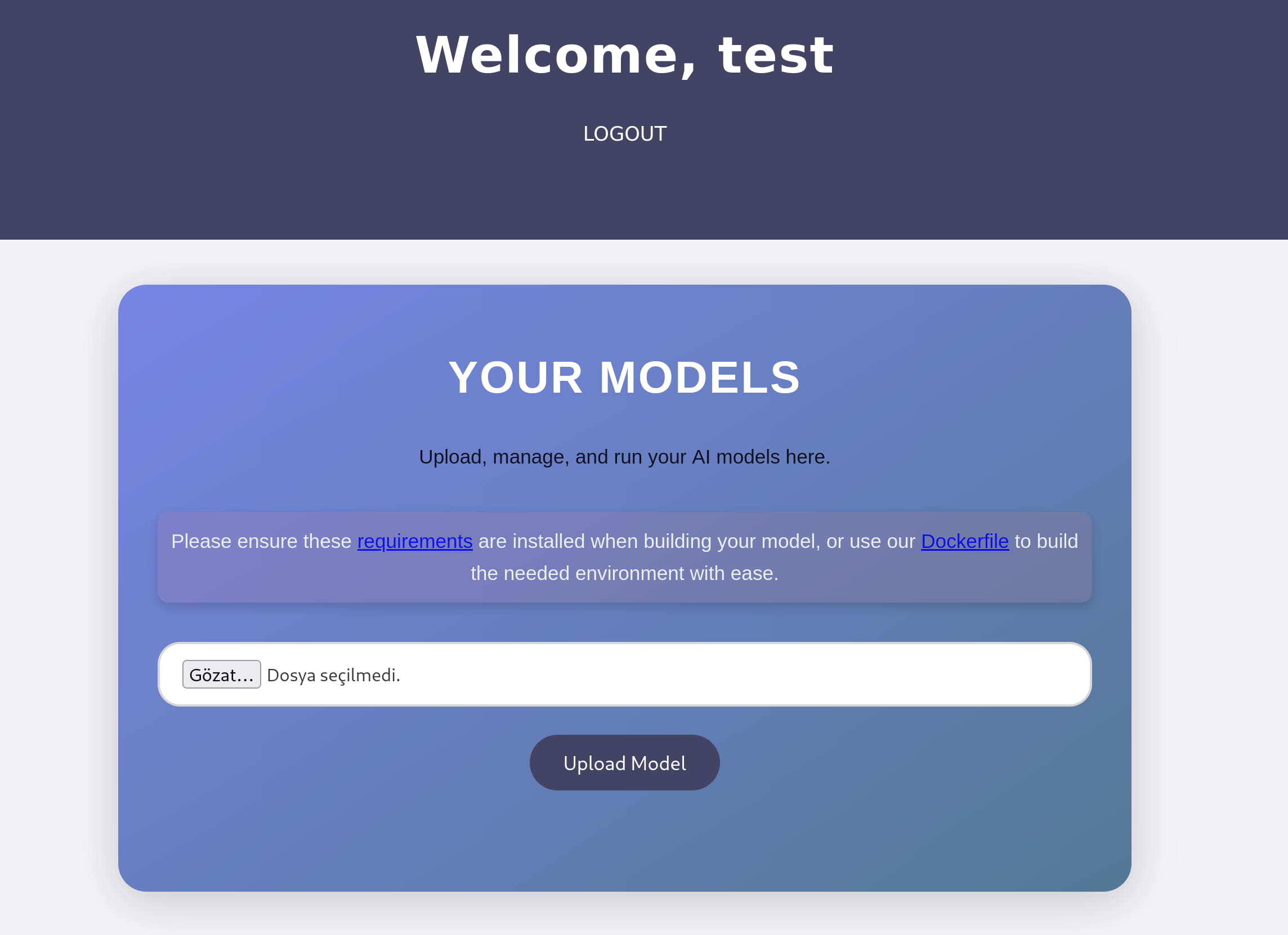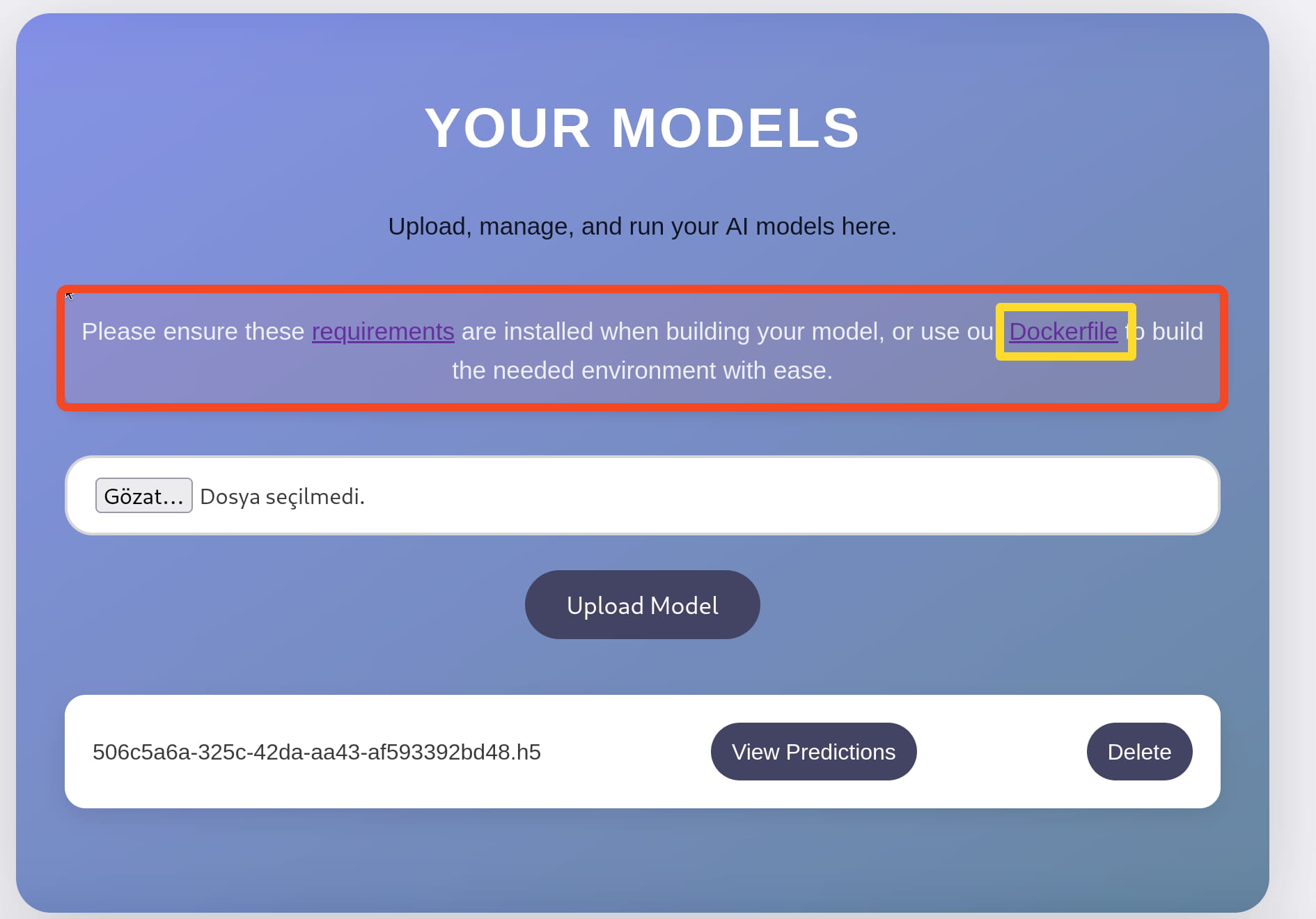 An interface appears where we can upload a model. When we try to upload a file here, we see that .h5 files are accepted.