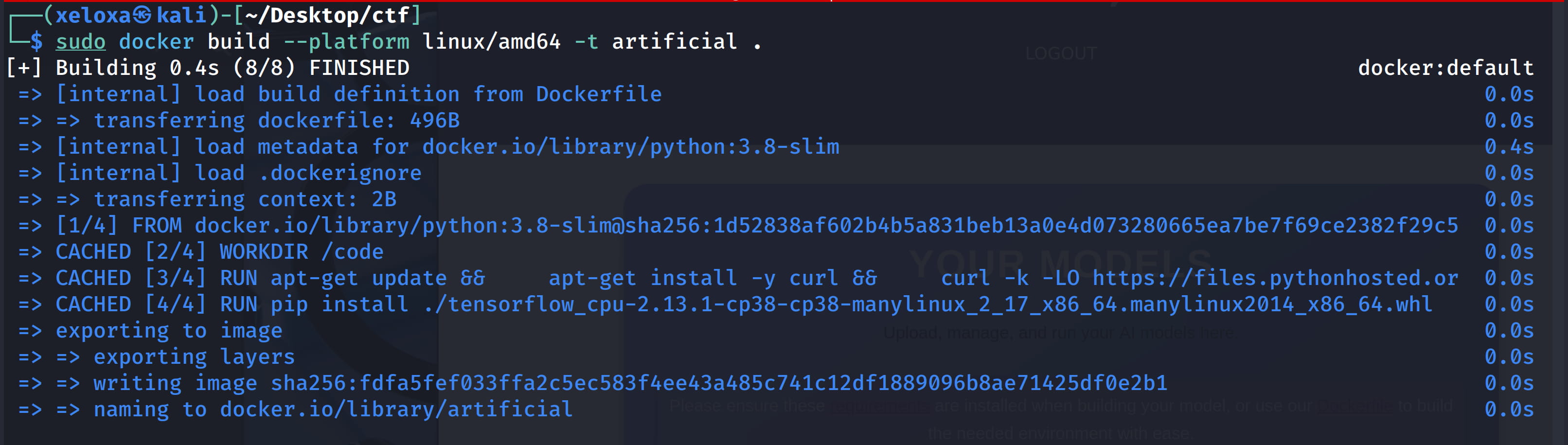 sudo docker build --platform linux/amd64 -t artificial .