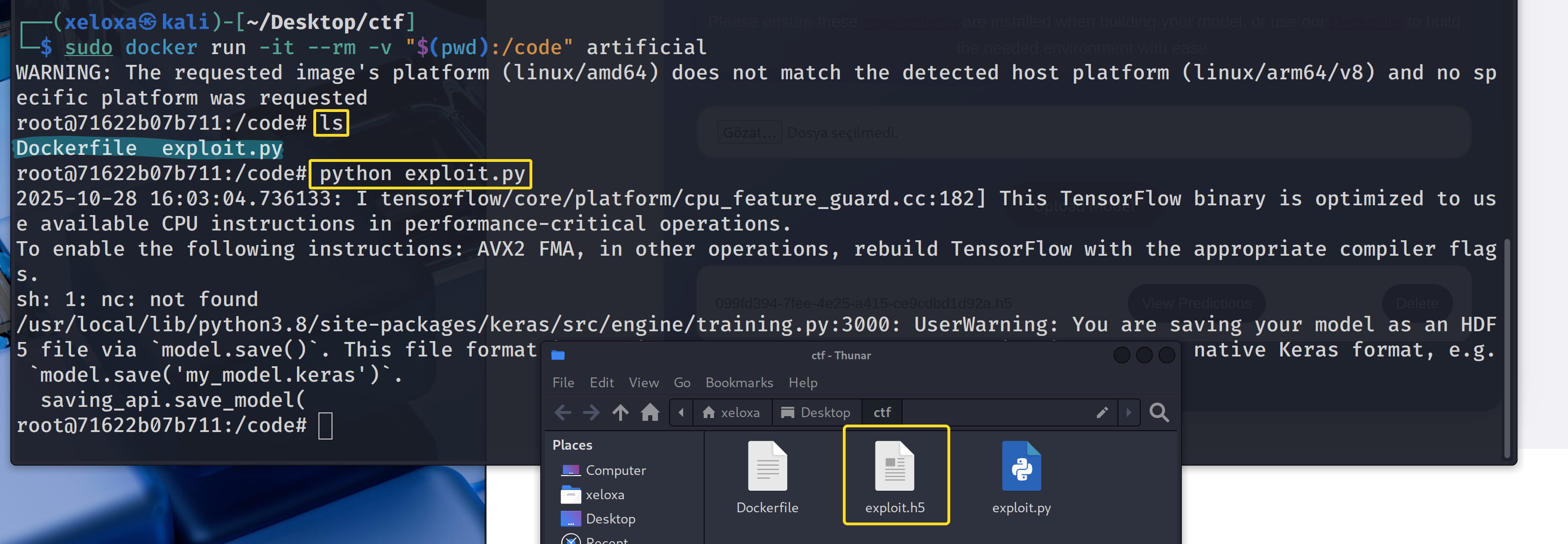 Now let's upload this exploit.h5 model to the target.