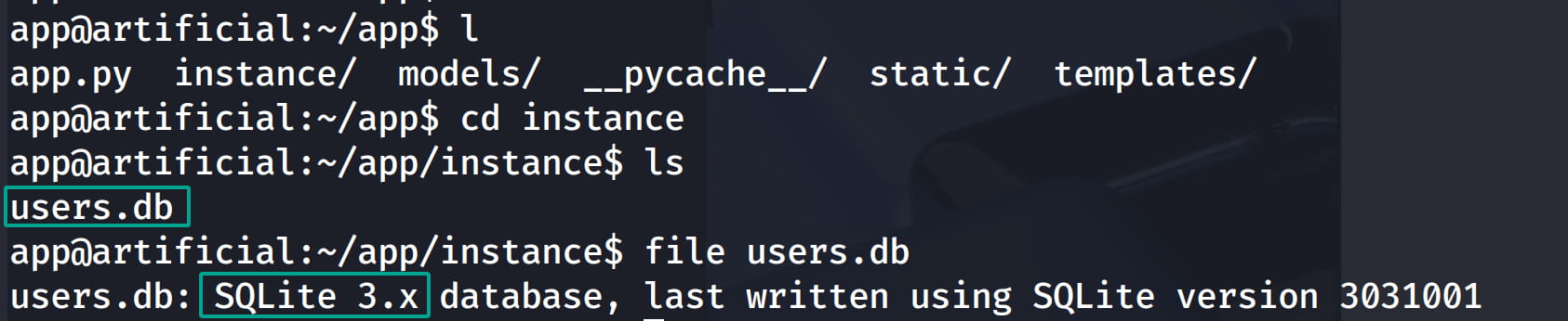When we browse our directory, we find a database file in instance.