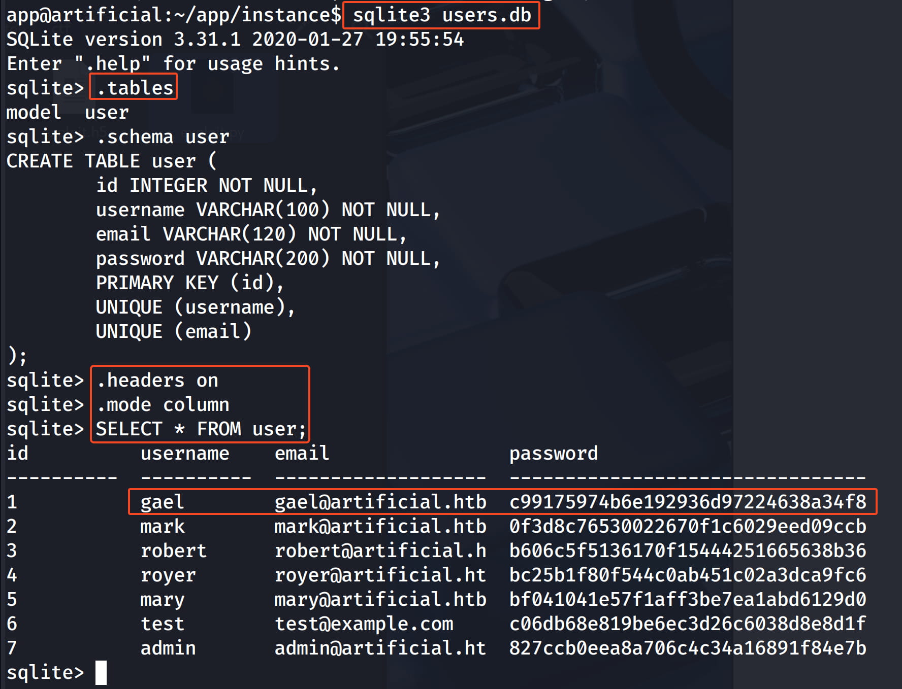 When we check from here, we get the users and their hashed passwords.