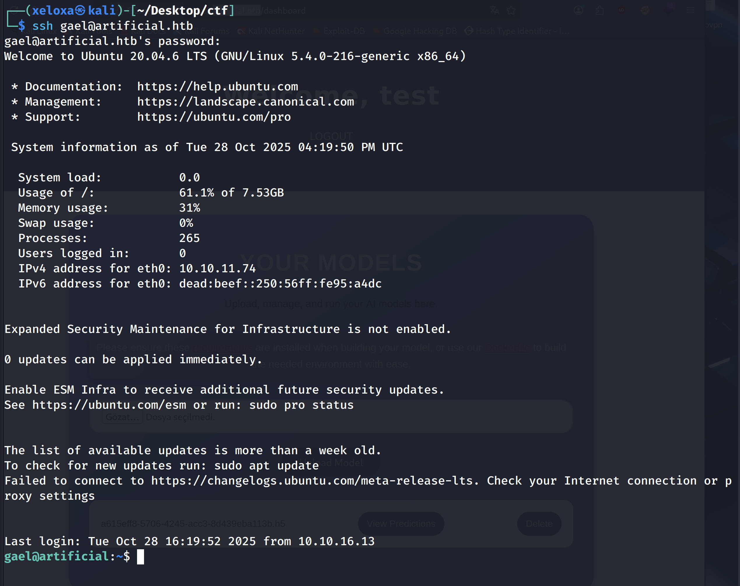 Target IP: 10.10.11.74 - artificial.htb