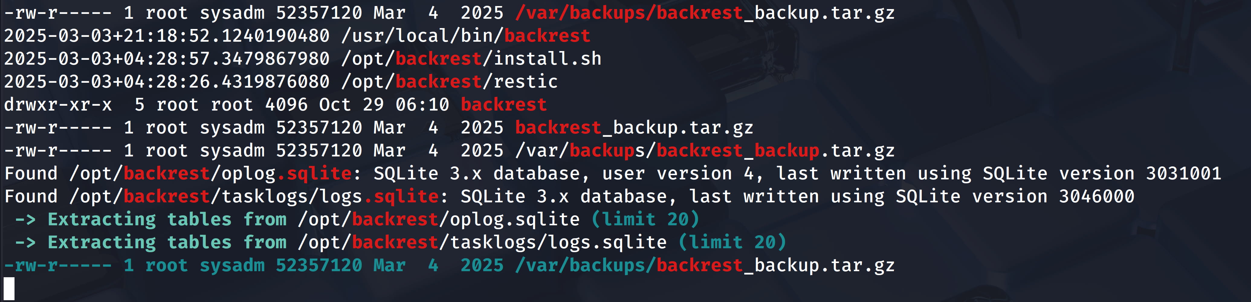 So let's do a search with ./linpeas.sh | grep "backrest" to see what else we can find and see what else we will find for backrest.