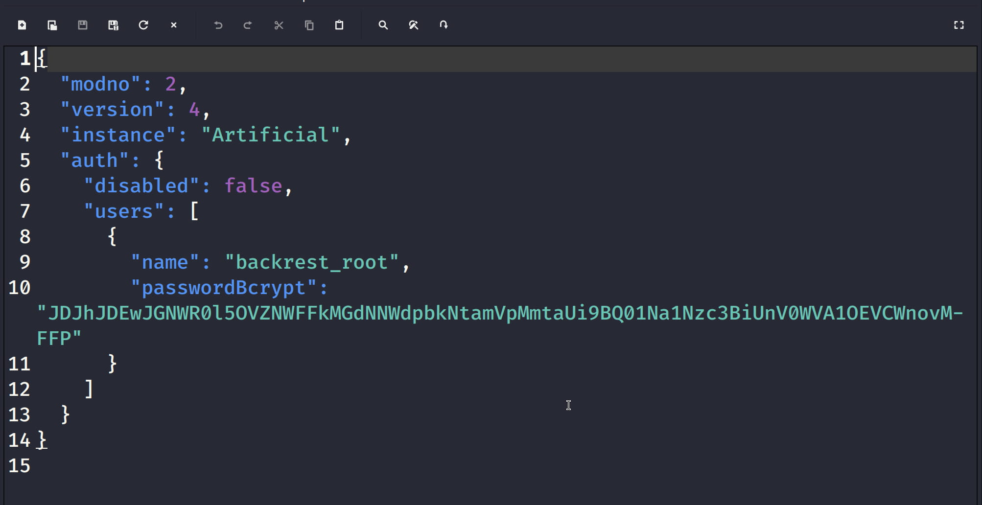And we were able to access config.json from this backup file and we see the name and password parts here.