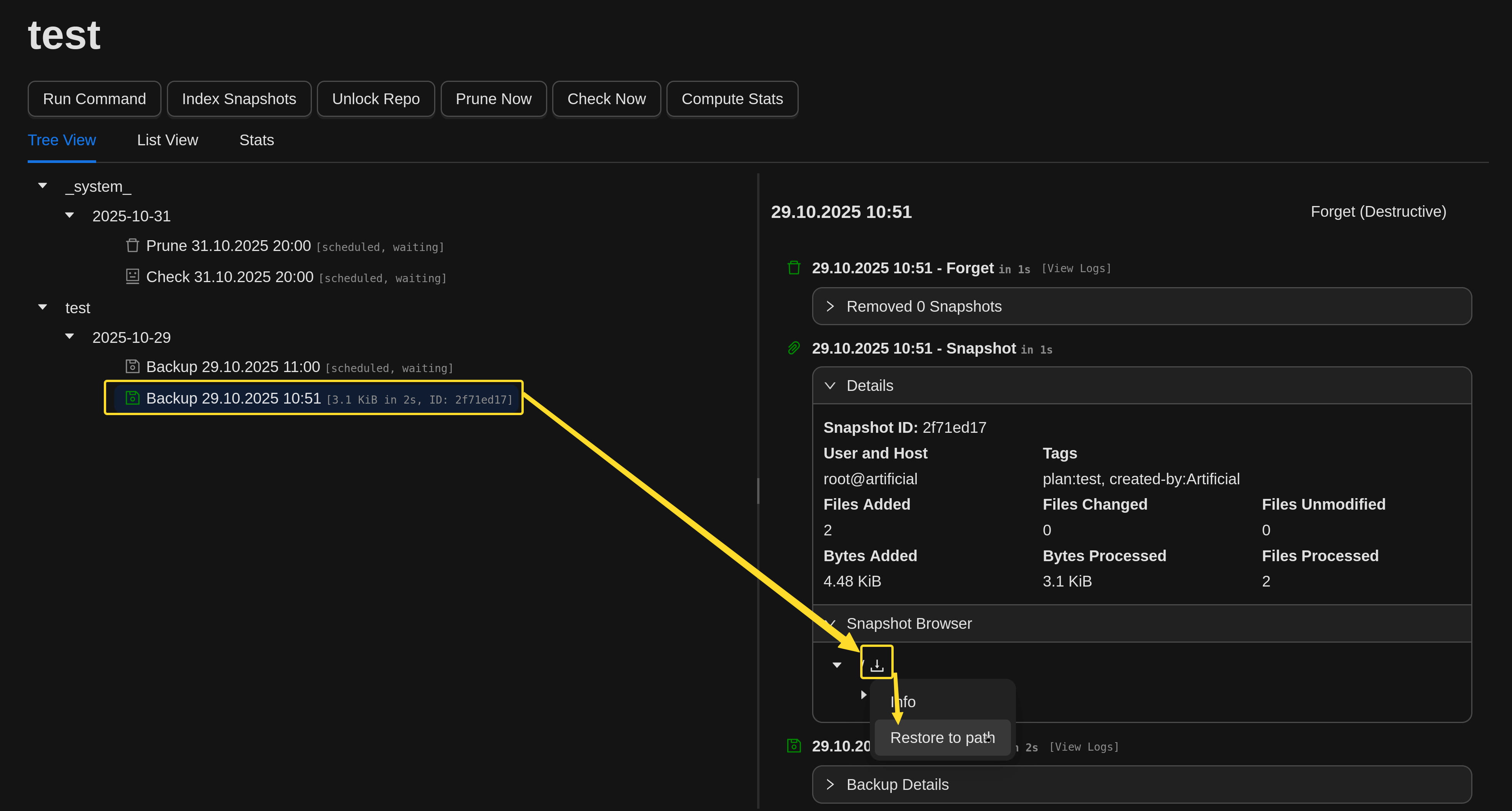 Now let's click on backup now from here. Now our backup has been taken, let's proceed from the repo section and restore this backup we took.