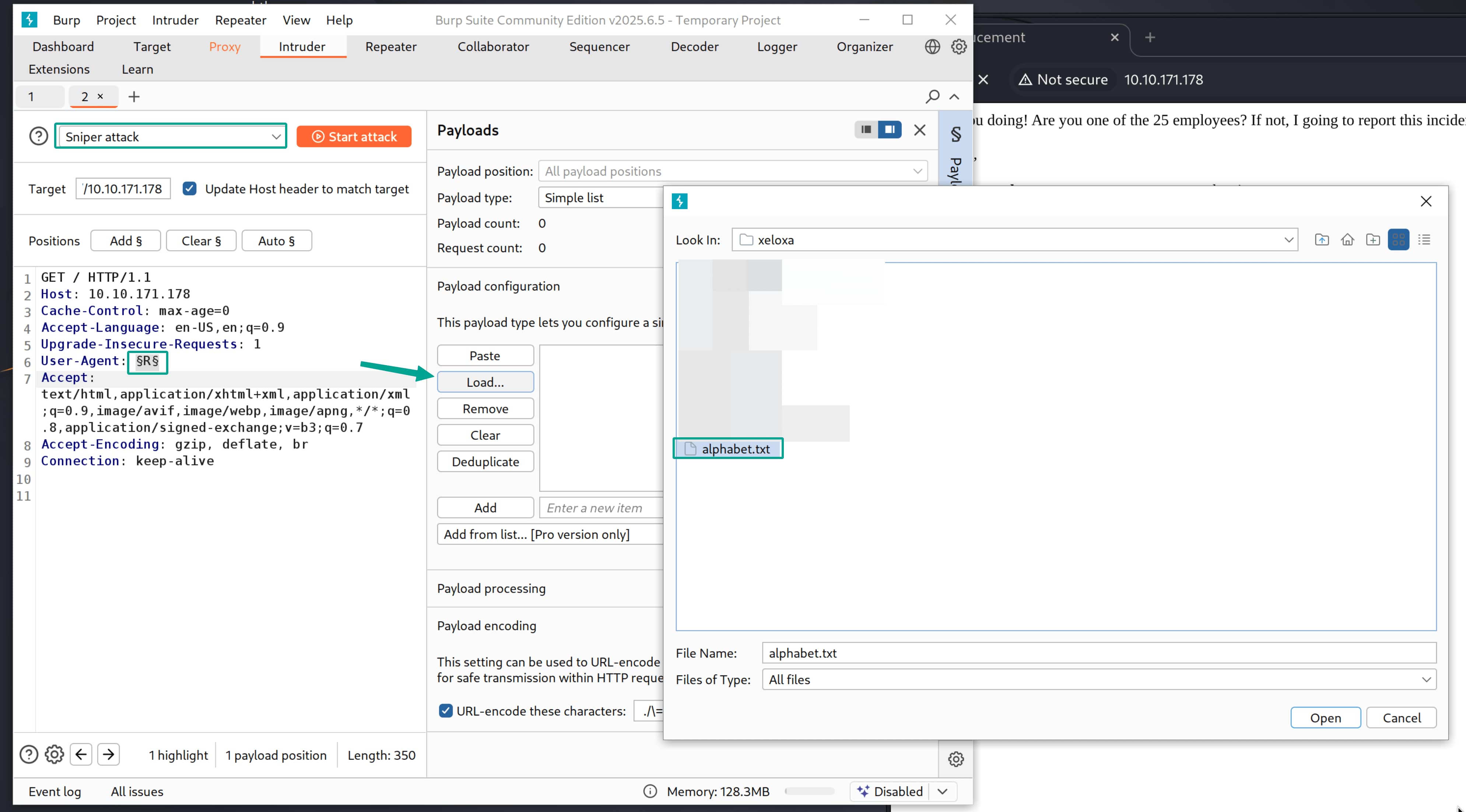 BurpSuiteto try the entire alphabet as theUser-Agent.