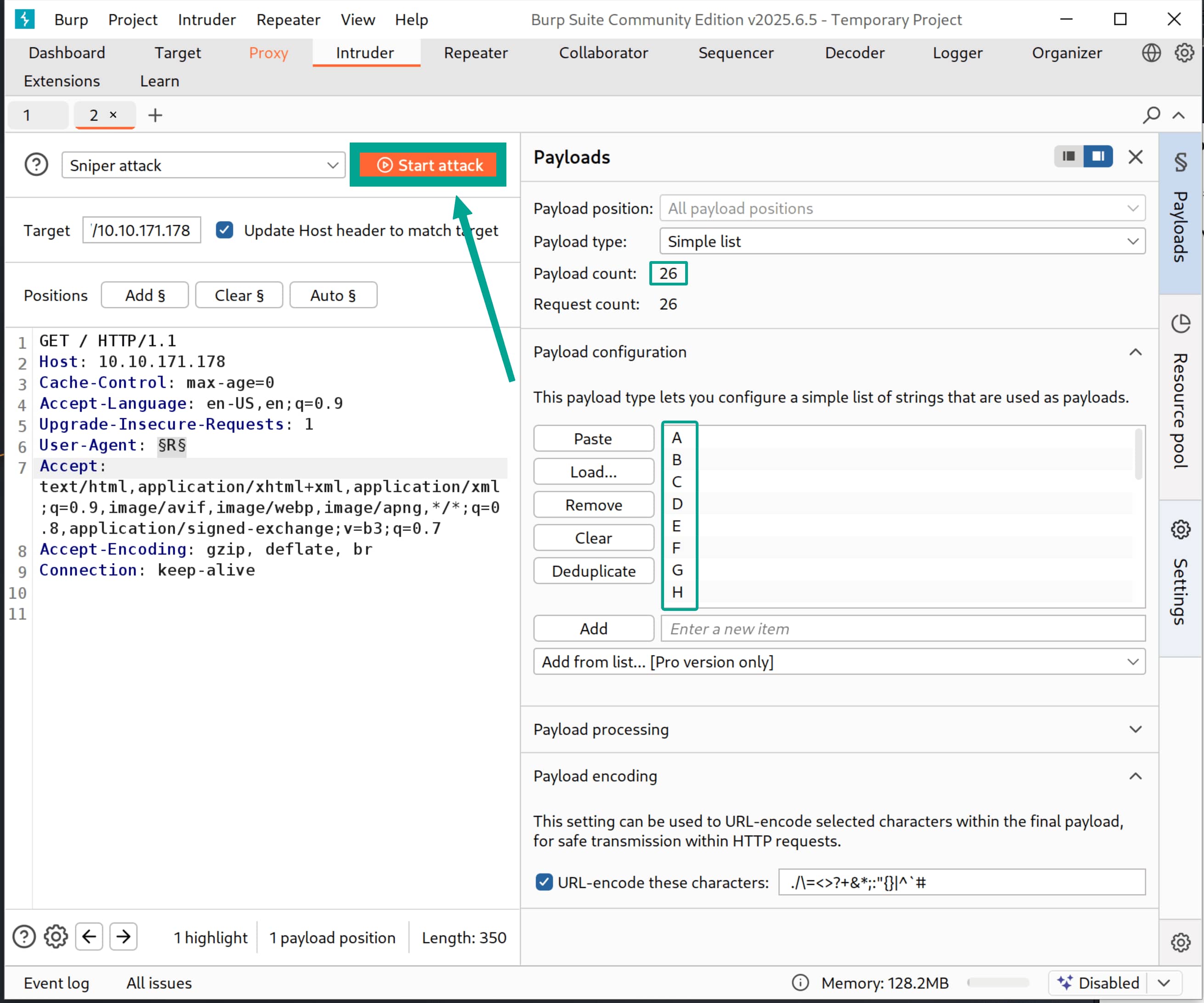 txt A B C D E F G H I J K L M N O P Q R S T U V W X Y Z - Load this wordlist. Then start the attack with