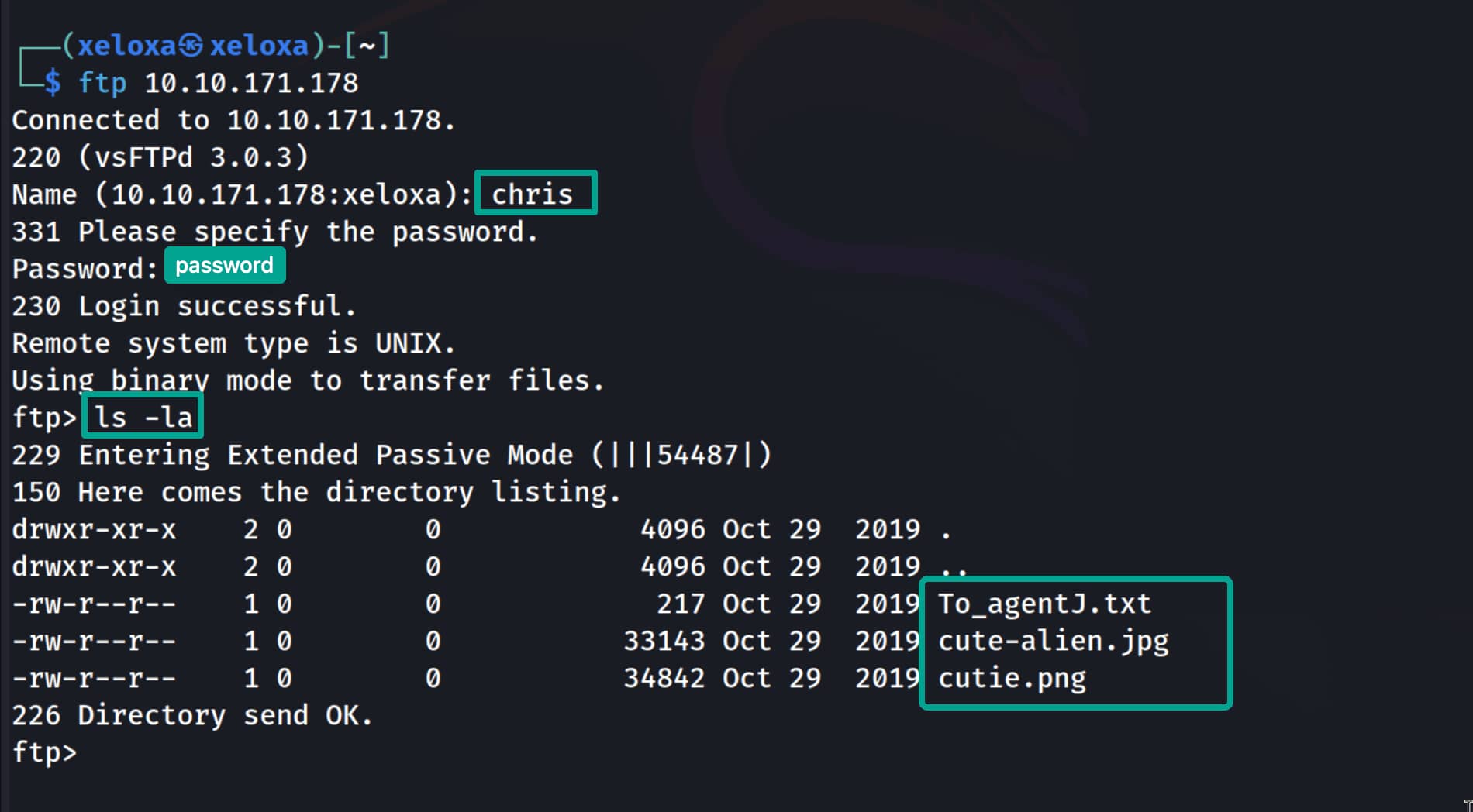 We have found the match chris:crystal. Now let’s log in to ftp with it.