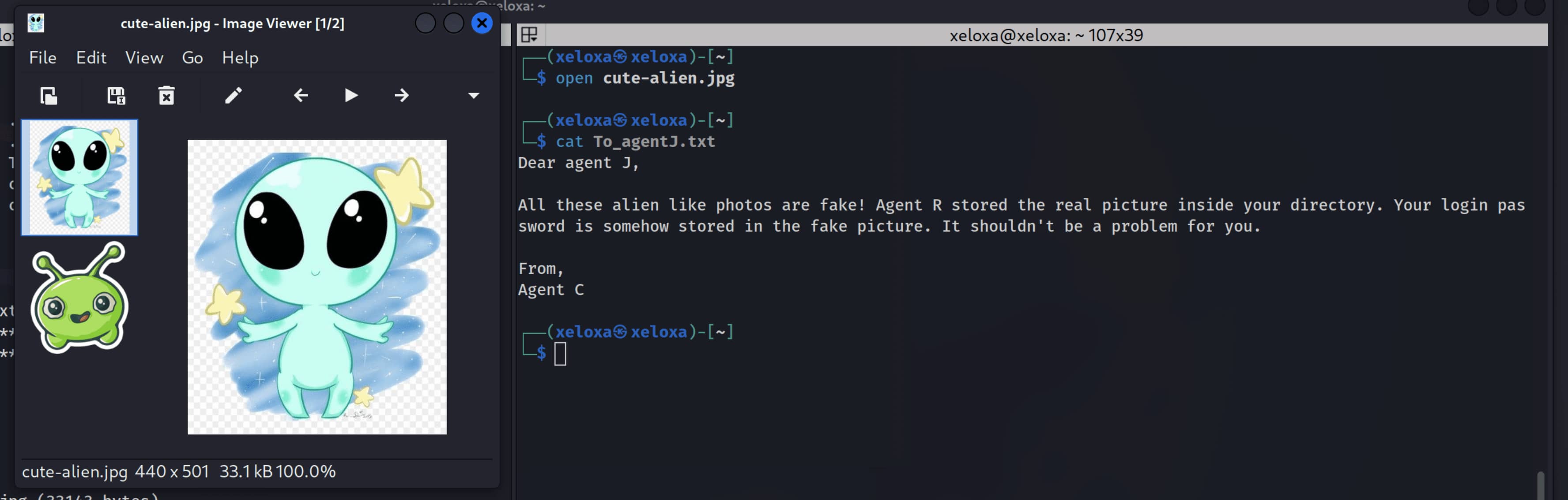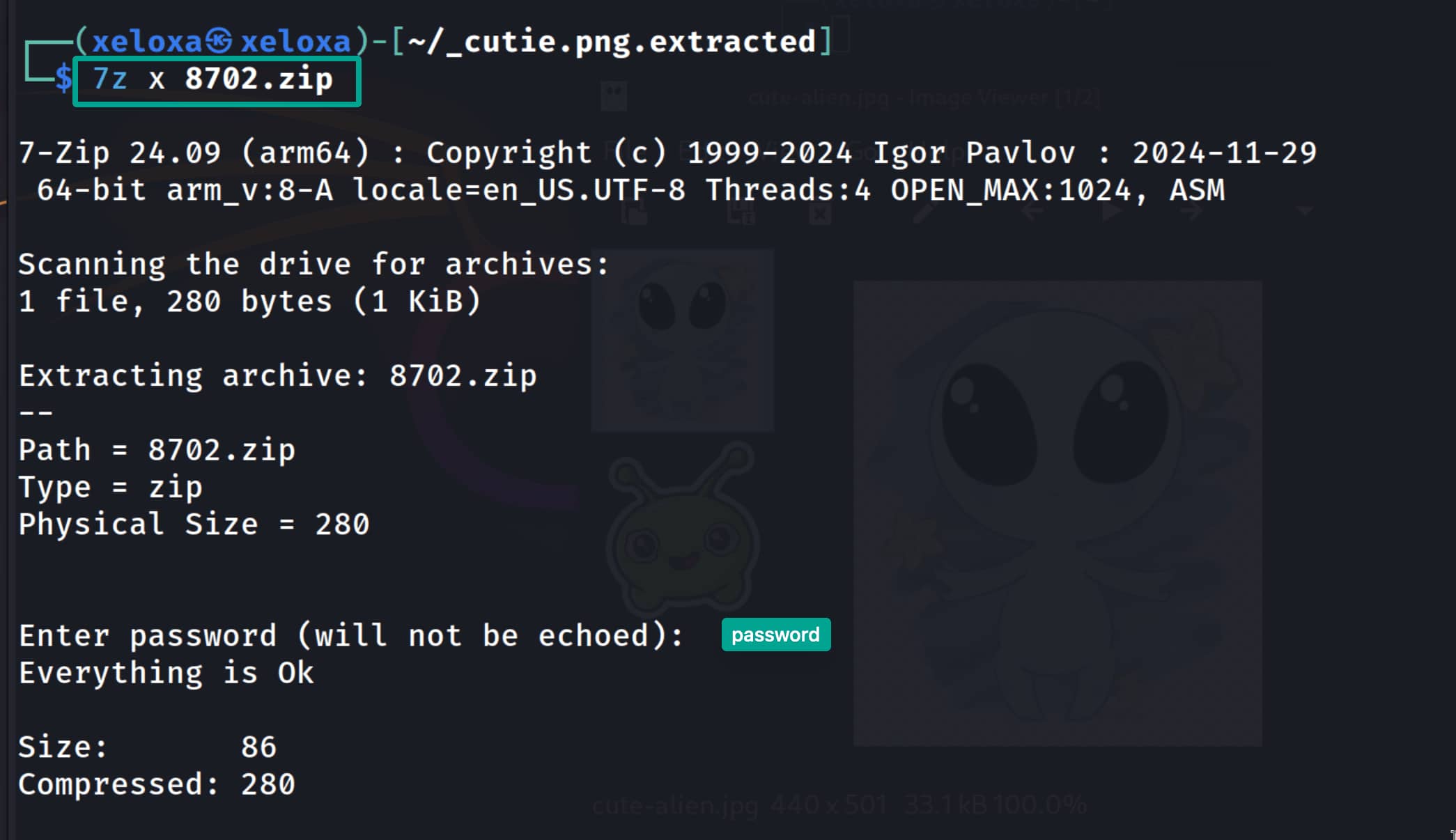Now we have examined the cutie.jpg file, but we have one more image: cute-alien.jpg