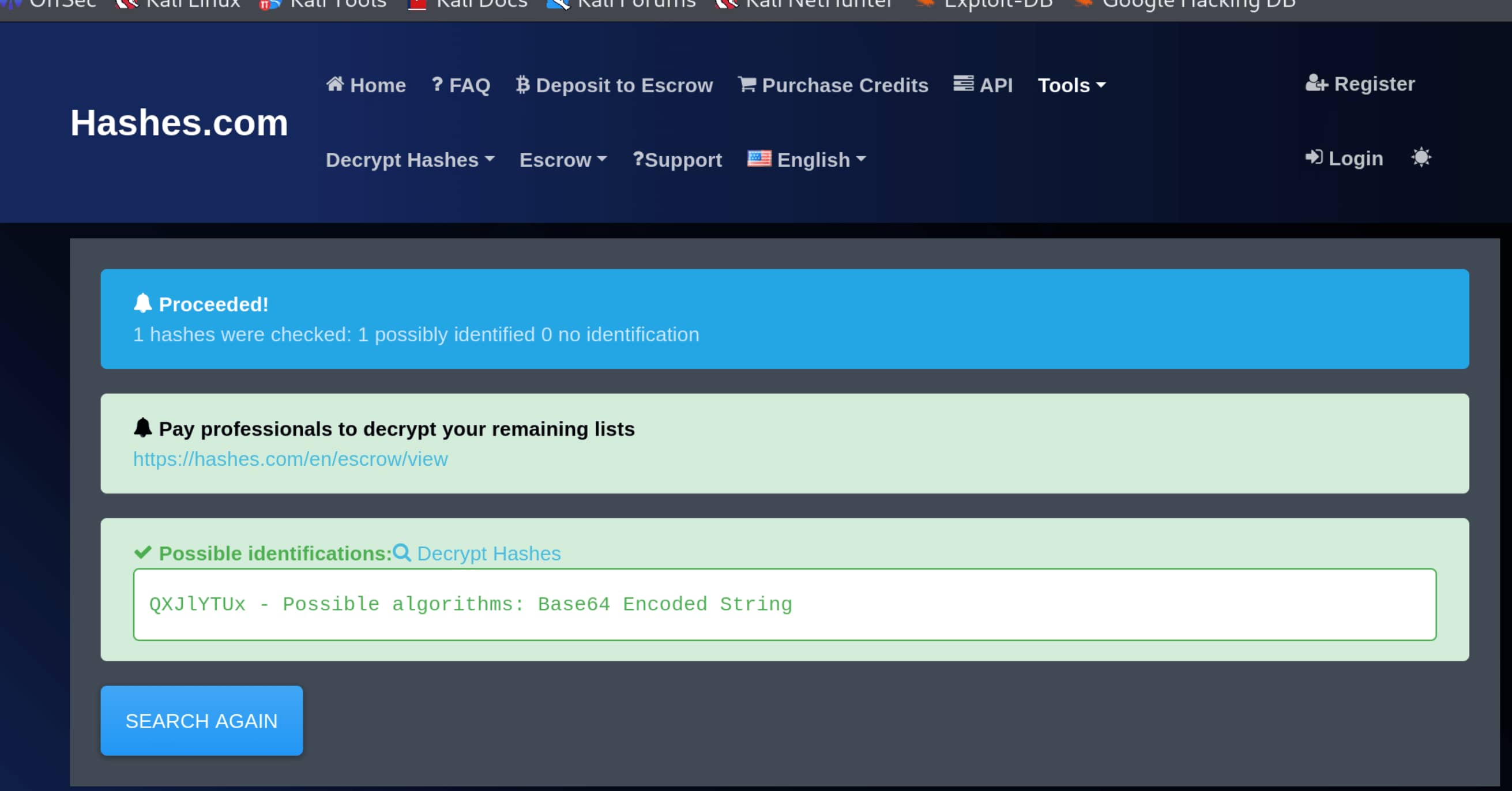 From the output we get something like QXJIYTUx, which looks meaningless. Let’s keep this aside; it might come in handy.