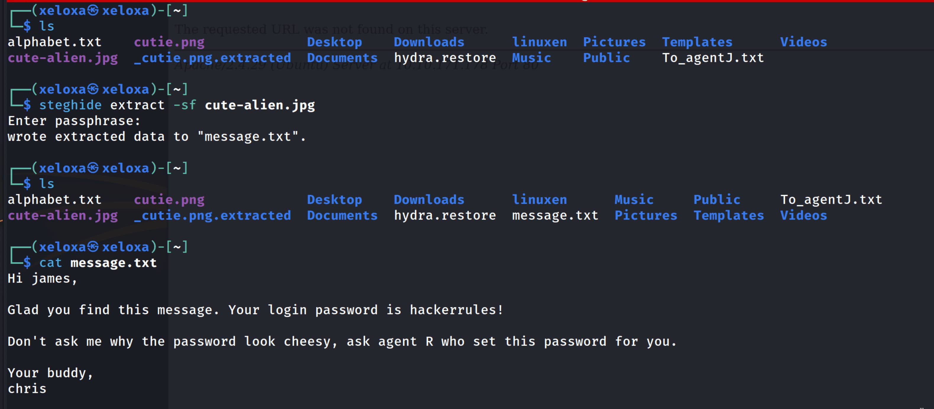 We get Area51 as output; let’s try this for steghide extract -sf cute-alien.jpg.
