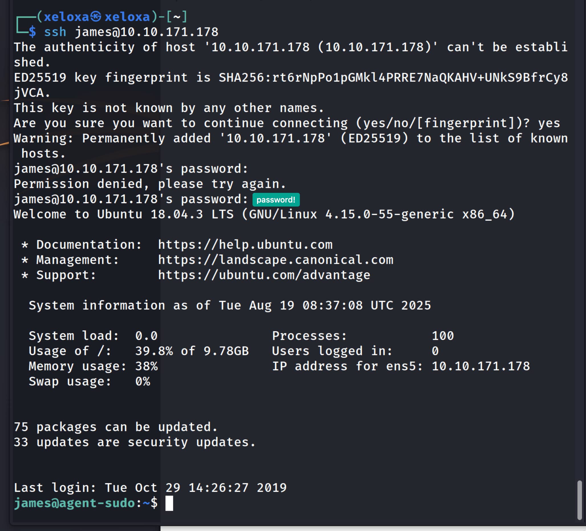 Yes, it worked; we obtained message.txt. From here we obtain the pair james:hackerrules!. Now with this information let’s connect to the system via ssh.