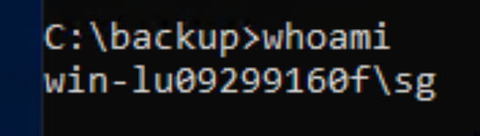 We now have access to a Windows machine. However, when we run the whoami command in cmd, we see that we are a low-privileged user: win-lu09299160f\sg.