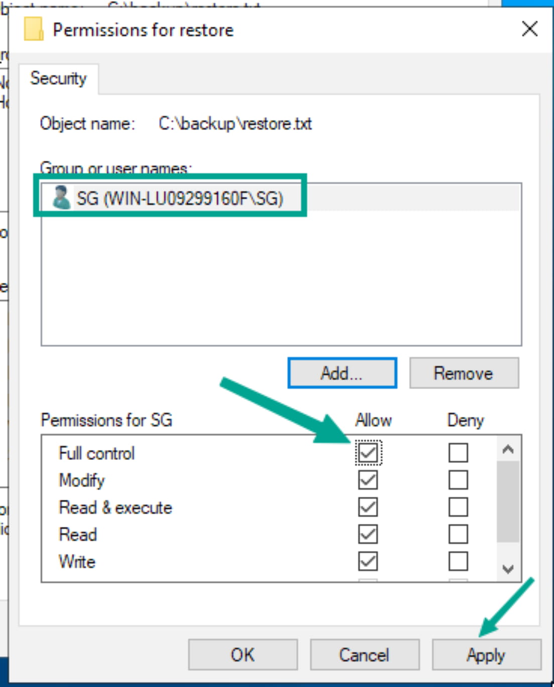 Now, give the user you just added (yourself) full control.