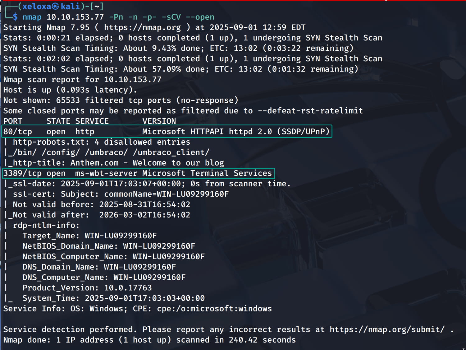 First, let's start with a port scan to see which services are running.