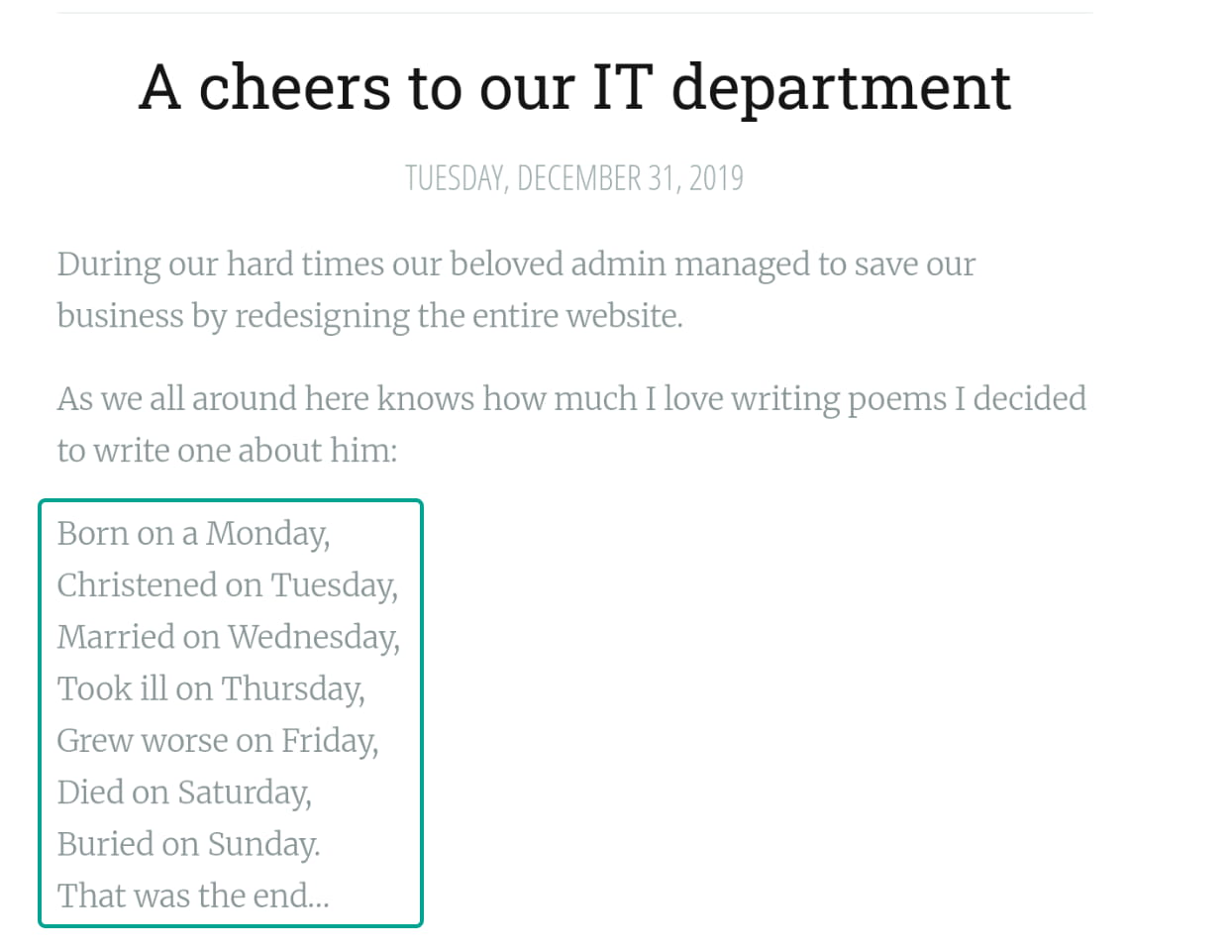 - A poem about the administrator