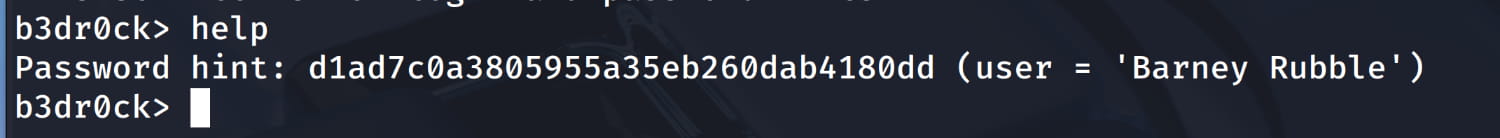 From here we get the information Barney Rubble:d1ad7c0a3805955a35eb260dab4180dd. Yes, our password may look hashed, but it is not. You can use it directly.