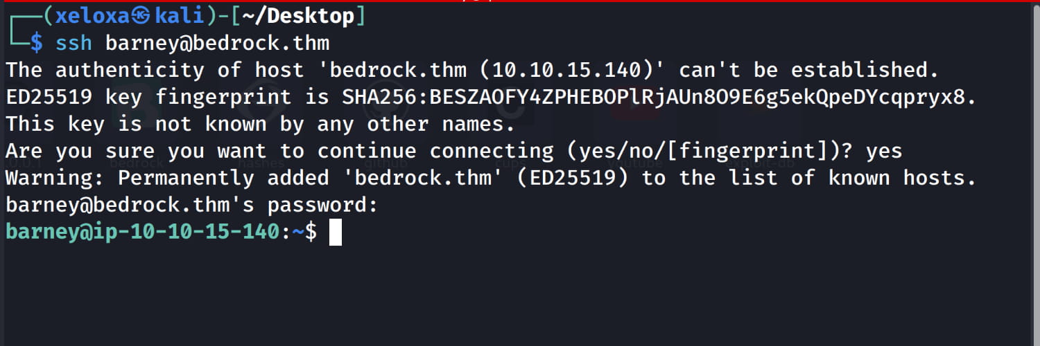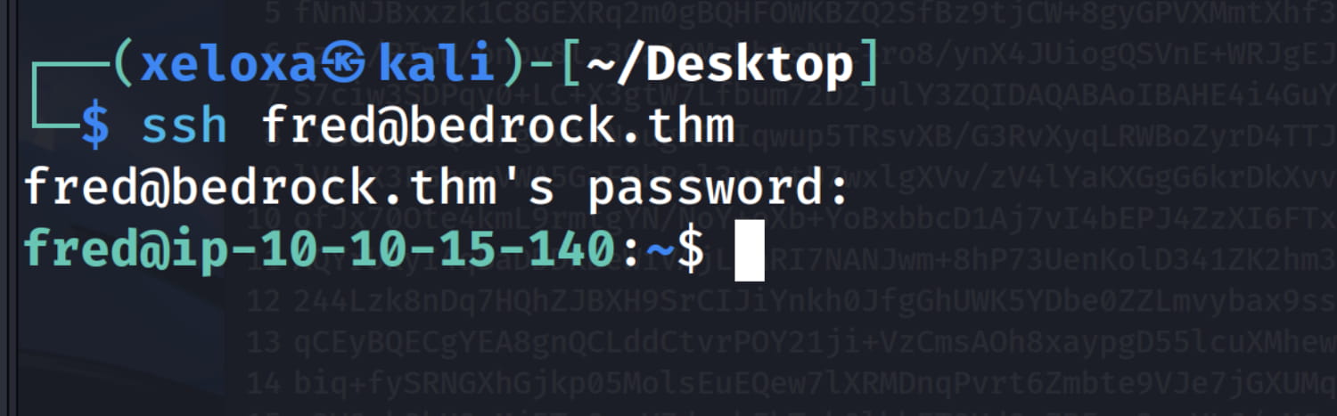 Now with this password, we can log in as root with ssh root@bedrock.thm.