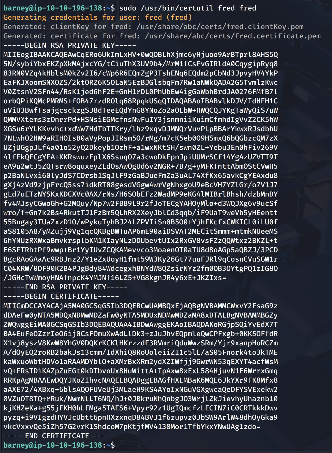When we run this binary with sudo, we are shown how to use it. From this, we understand that thanks to this tool, we can list our certificates and add new keypairs. In our case, we will create new keys for fred.