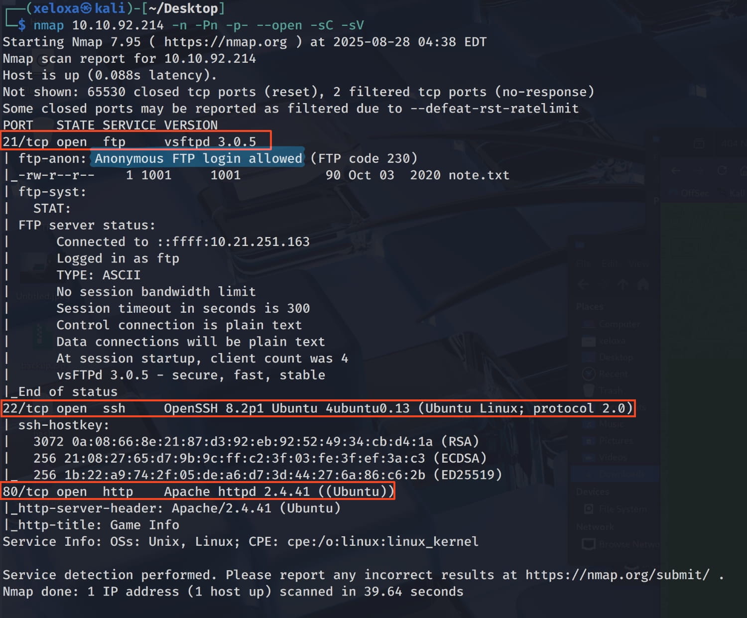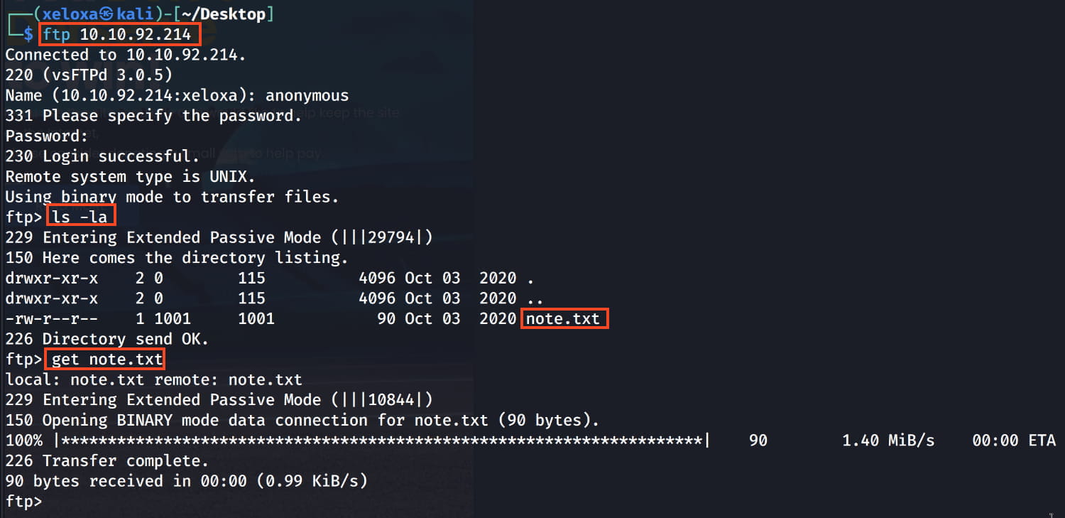We have an FTP server with anonymous access, one SSH server, and one web server. Let's examine these and see what we can find.