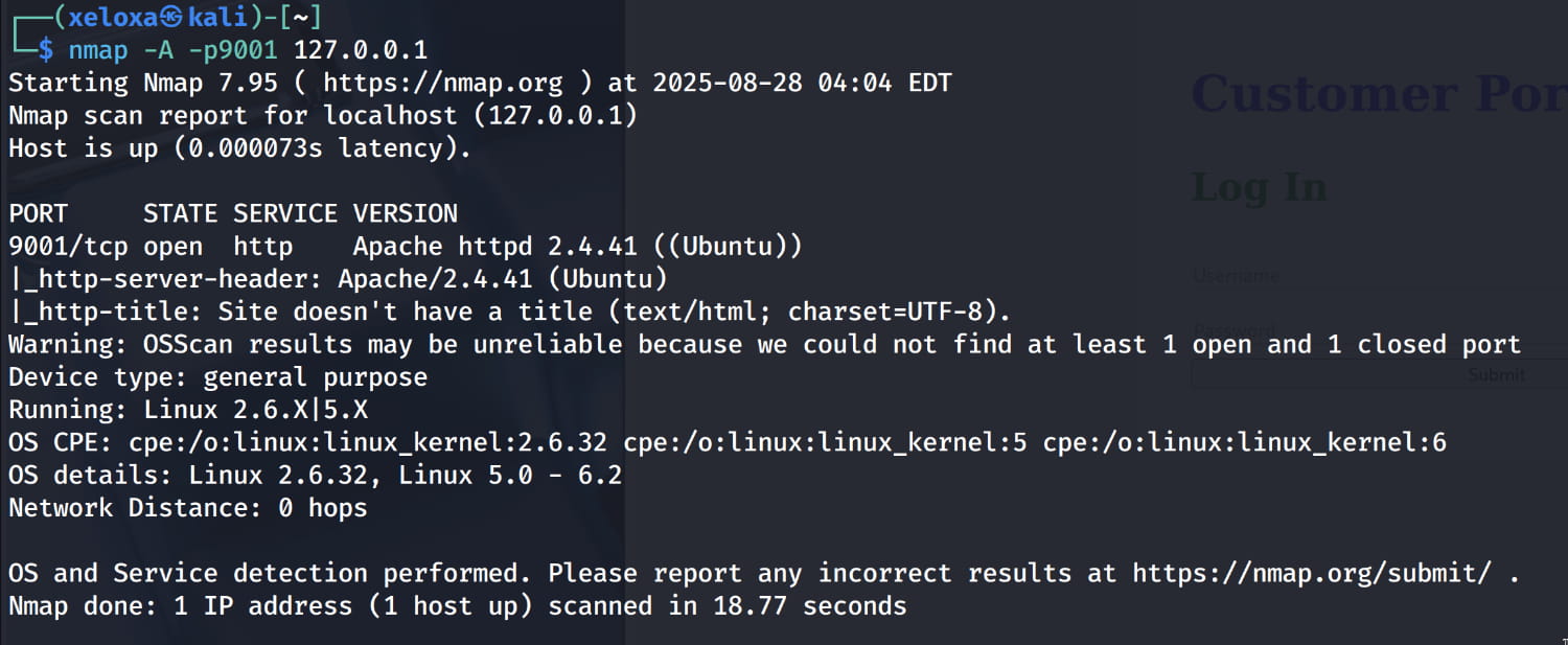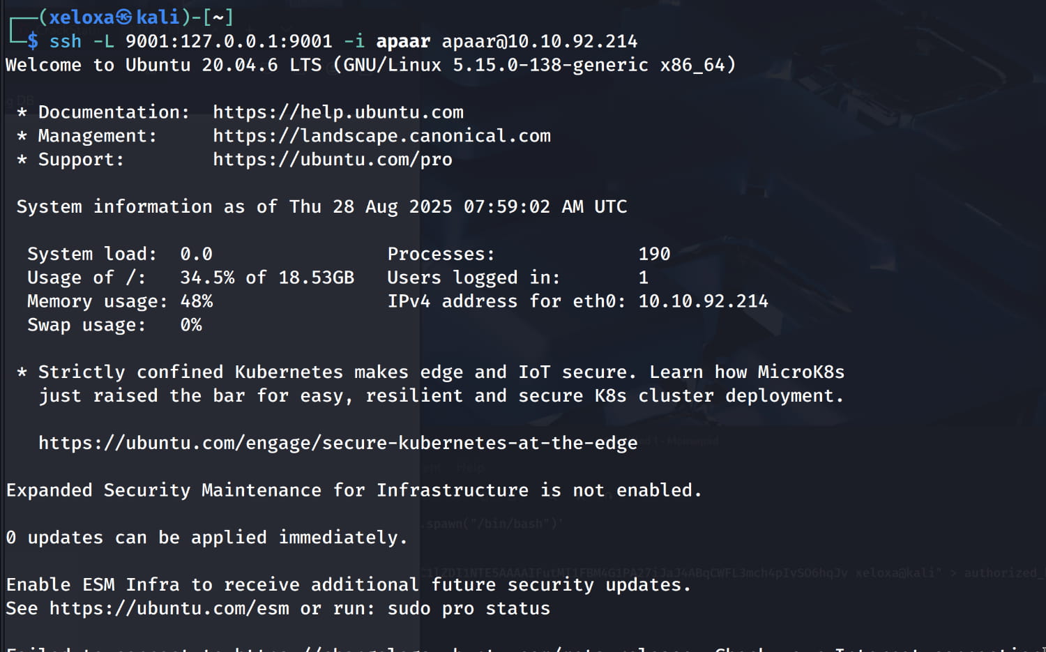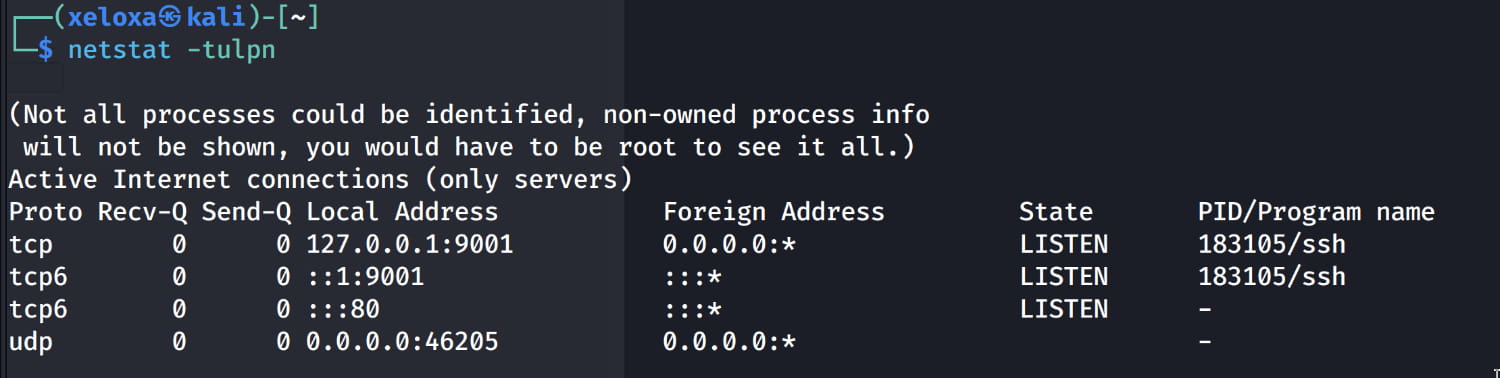 Now we need to find the login page where we will use this information. If you recall, we previously found three ports that were only accessible locally. Now let's forward the 9001 port here locally with ssh.