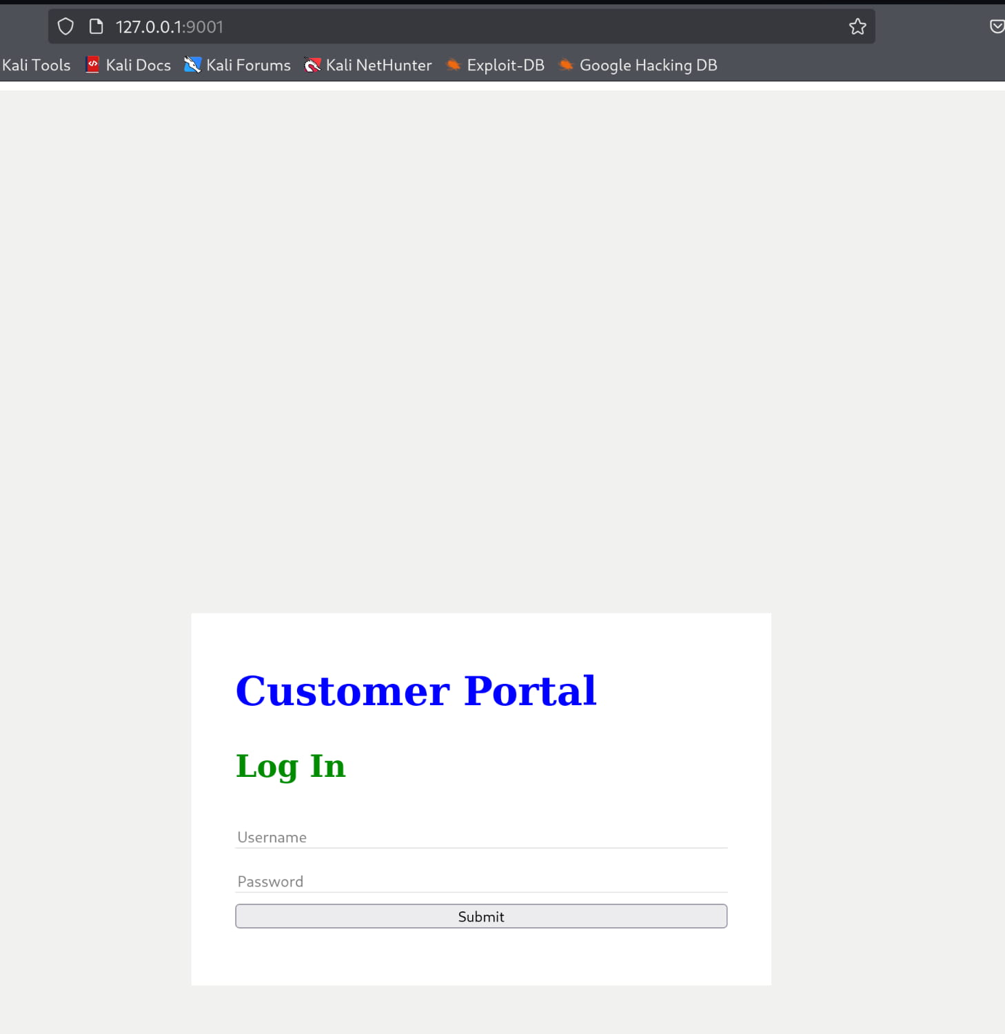 As you can see, a web server is running on this port. And when we inspect it, our login page is here.