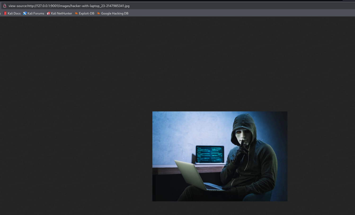 Nothing immediately stands out on the page. We examine the source code but find nothing of interest. Therefore, let's inspect the image on the site; it might be hiding something.