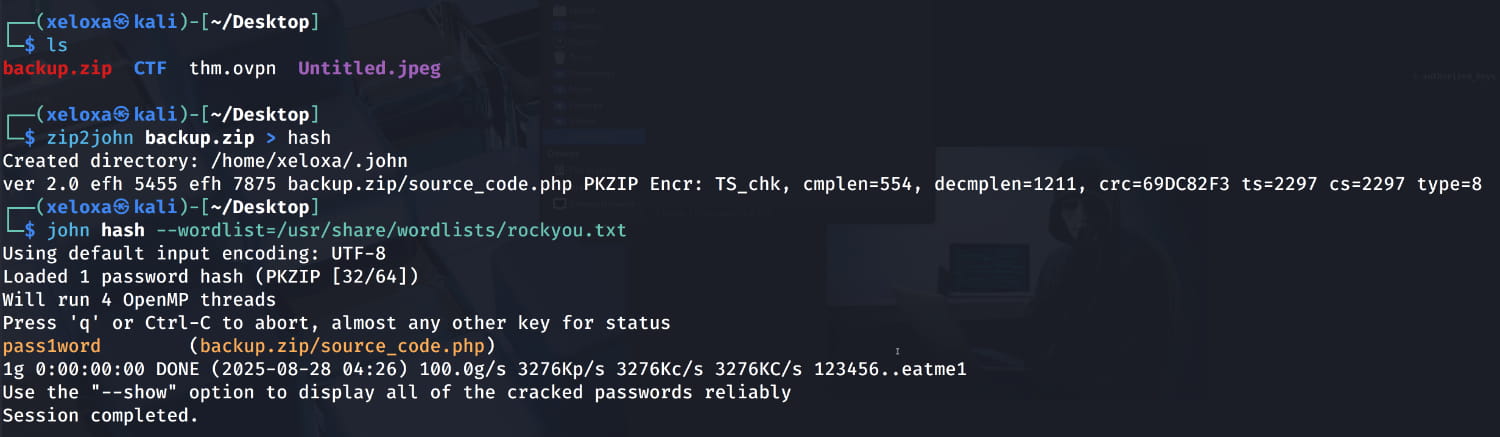 And the zip has a password. However, we can easily crack it with John the Ripper.