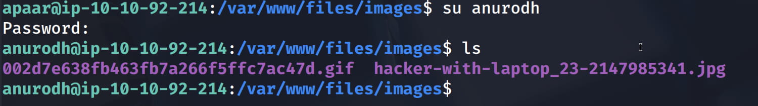 Now let's switch to the anurodh user with su anurodh.
