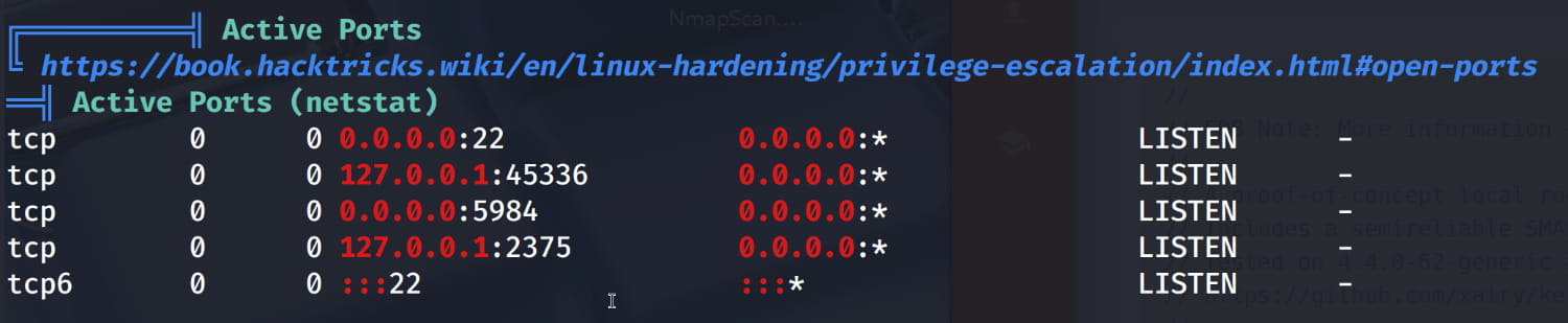 Here, the 2375:docker service, which is only accessible locally, catches our attention.