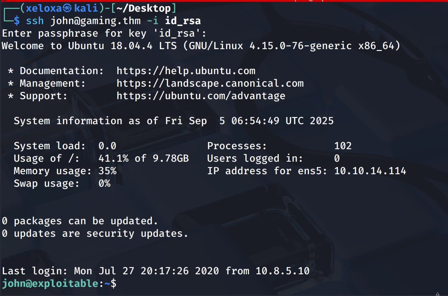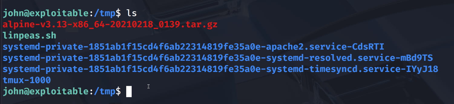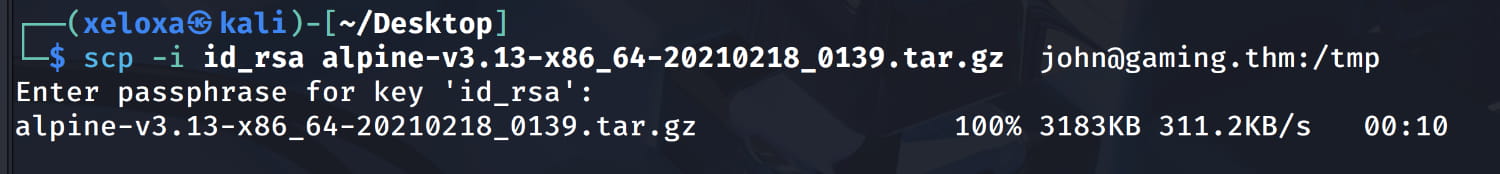 scp -i id_rsa alpine-v3.13-x86_64-20210218_0139.tar.gz john@gaming.thm:/tmp.