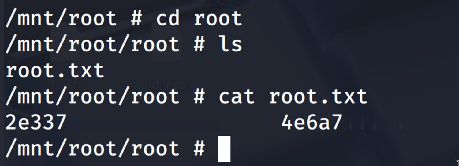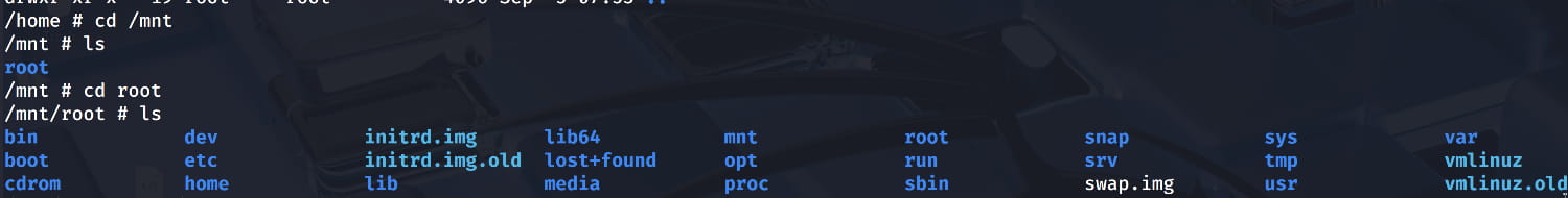 /mnt/rootdirectory where we mounted the host machine's root directory.