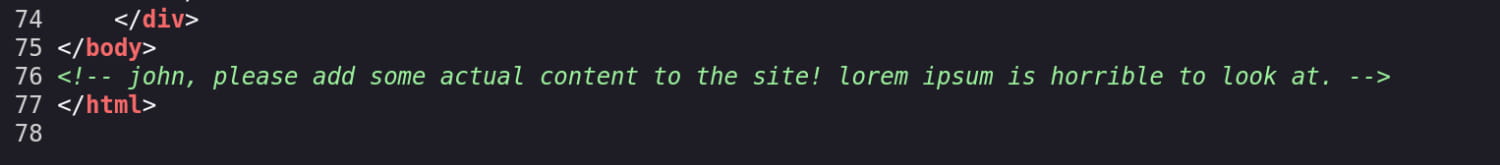 When we inspect the website's source code, we obtain the username john.