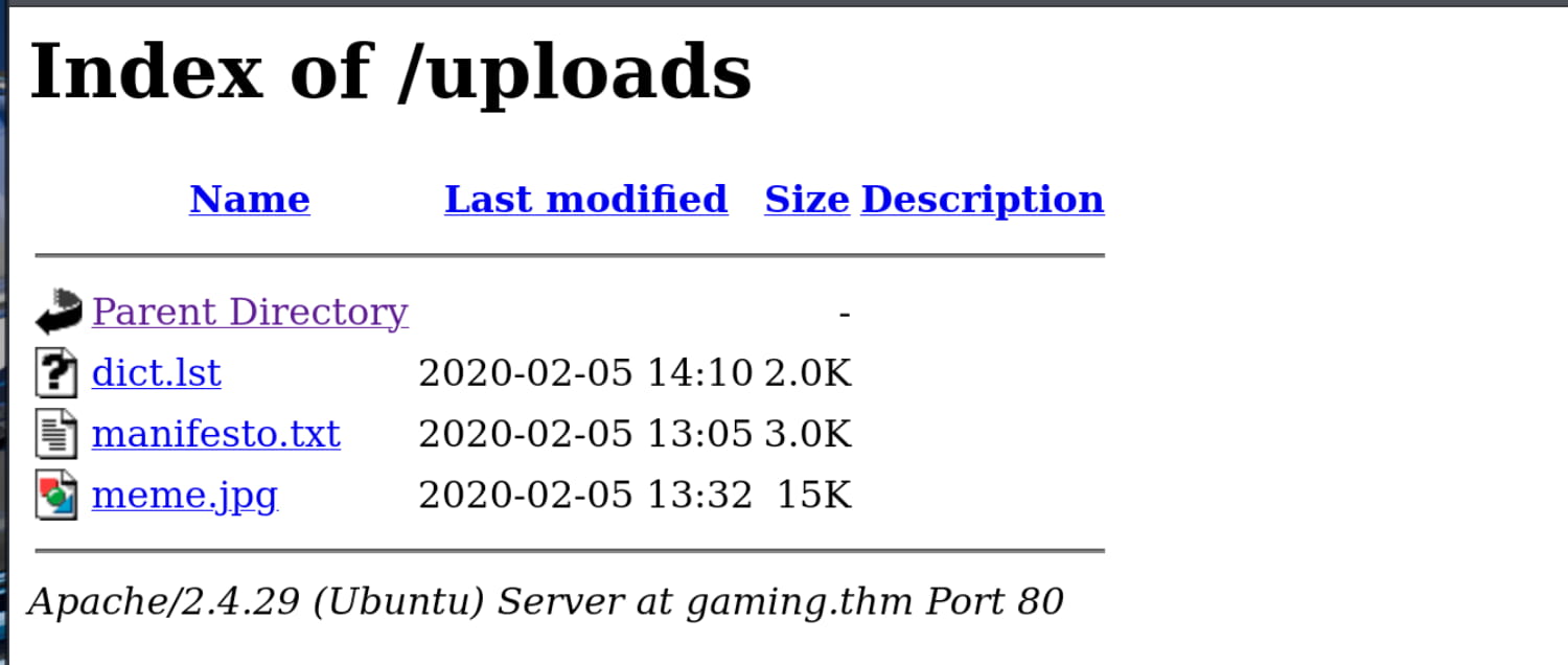 Target IP: gaming.thm