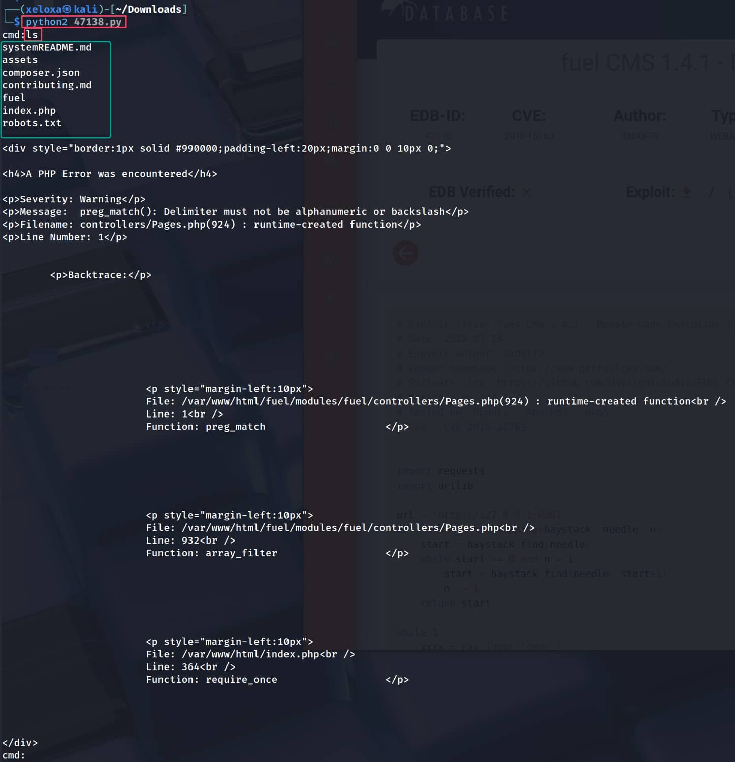 We find CVE-2018-16763. Now let's download this exploit and run it. As you can see, we received an error because we did not configure a proxy. You can resolve this error by deleting the following lines. (While writing this article, I noticed that there are newer versions of these exploits that are more stable. You can use those as well. 1,2)