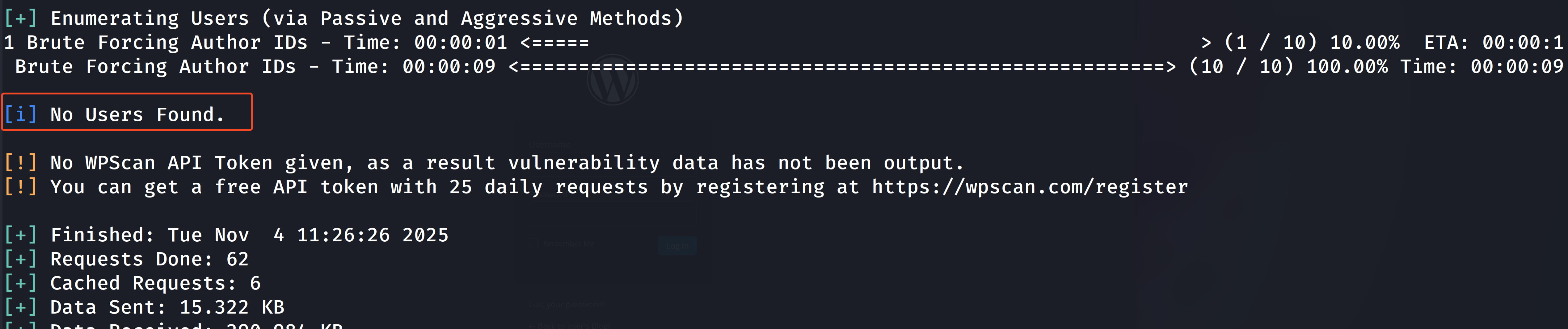 And yes, elliot is our username. Now, let's perform a password bruteforce attack using this username. We'll use wpscan as it's fast.