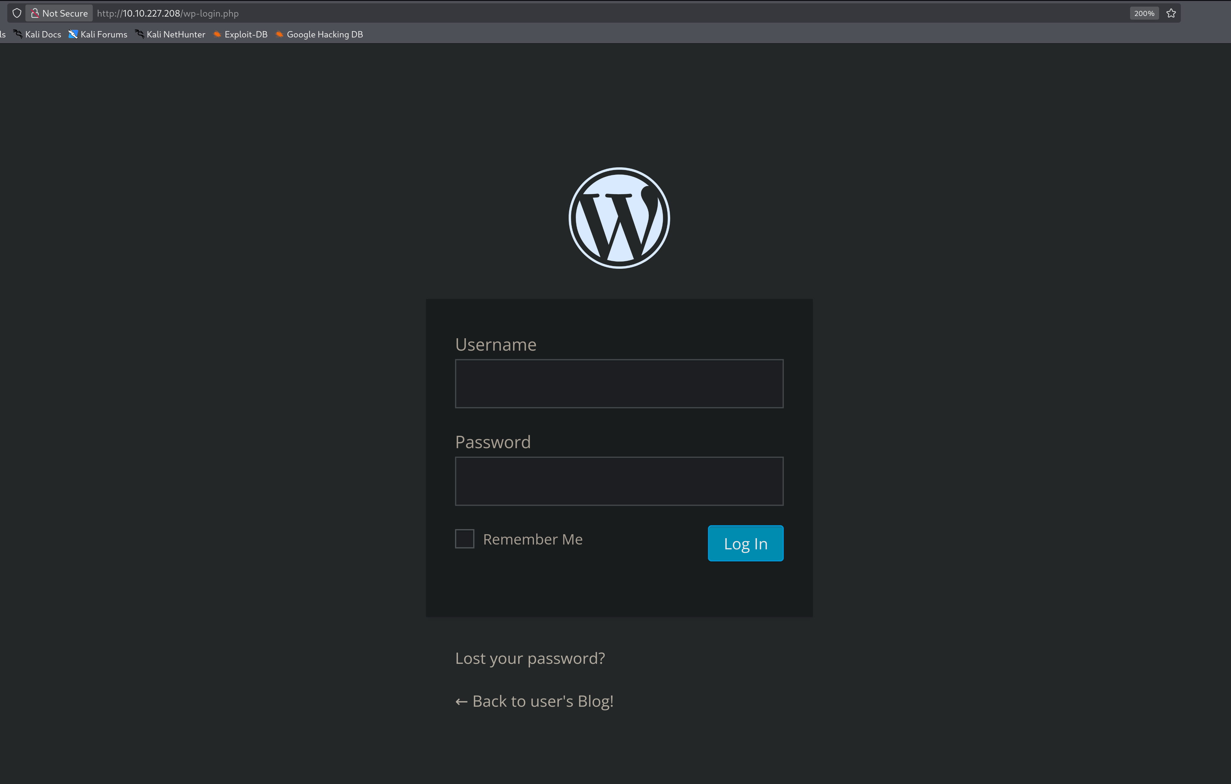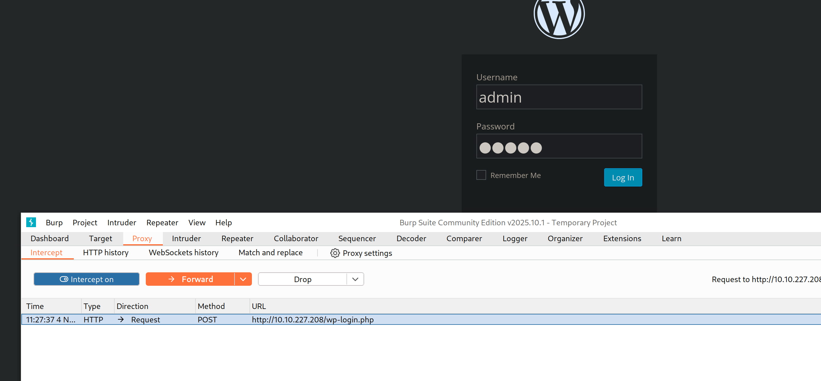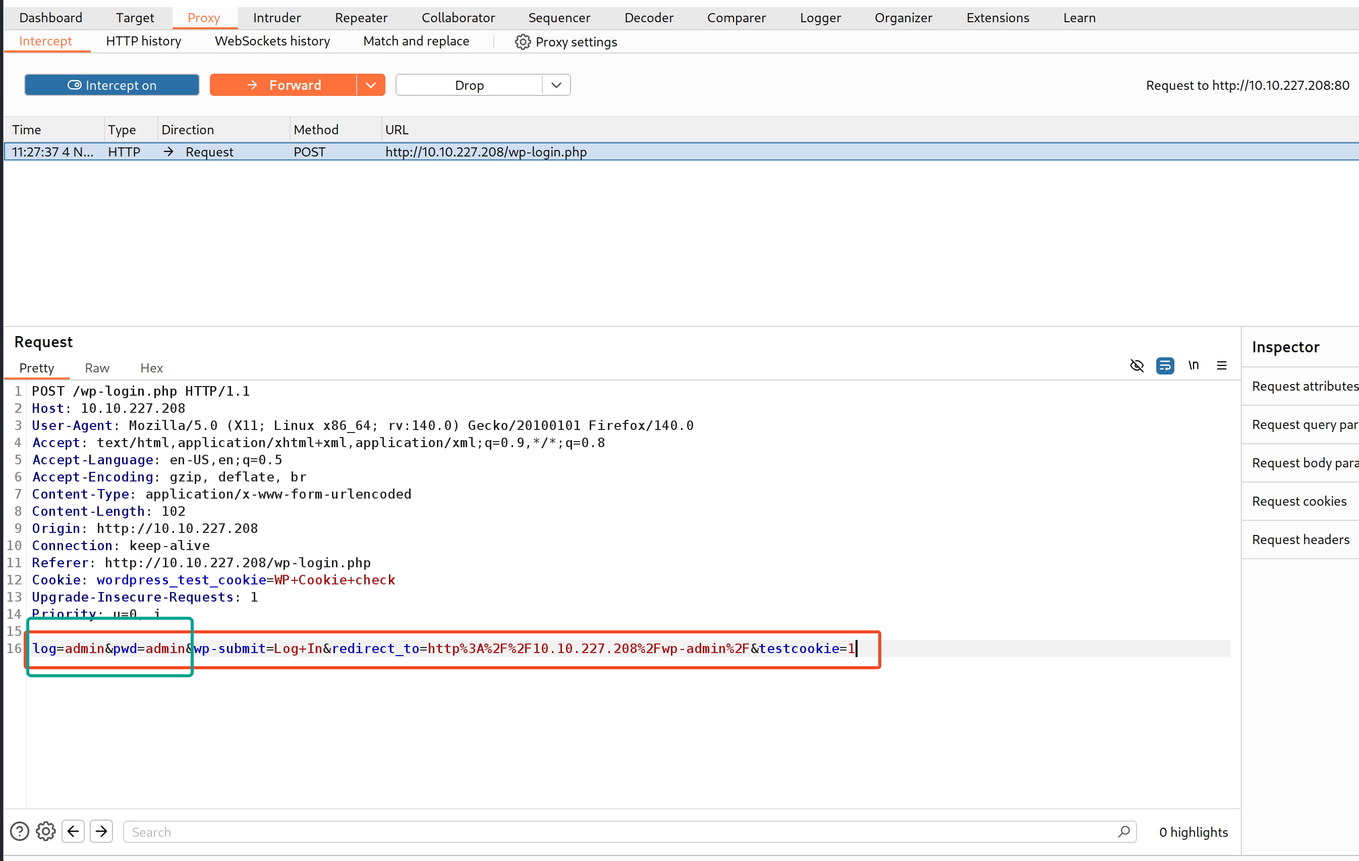log=admin&pwd=admin&wp-submit=Log+In&redirect_to=http%3A%2F%2F10.10.227.208%2Fwp-admin%2F&testcookie=1