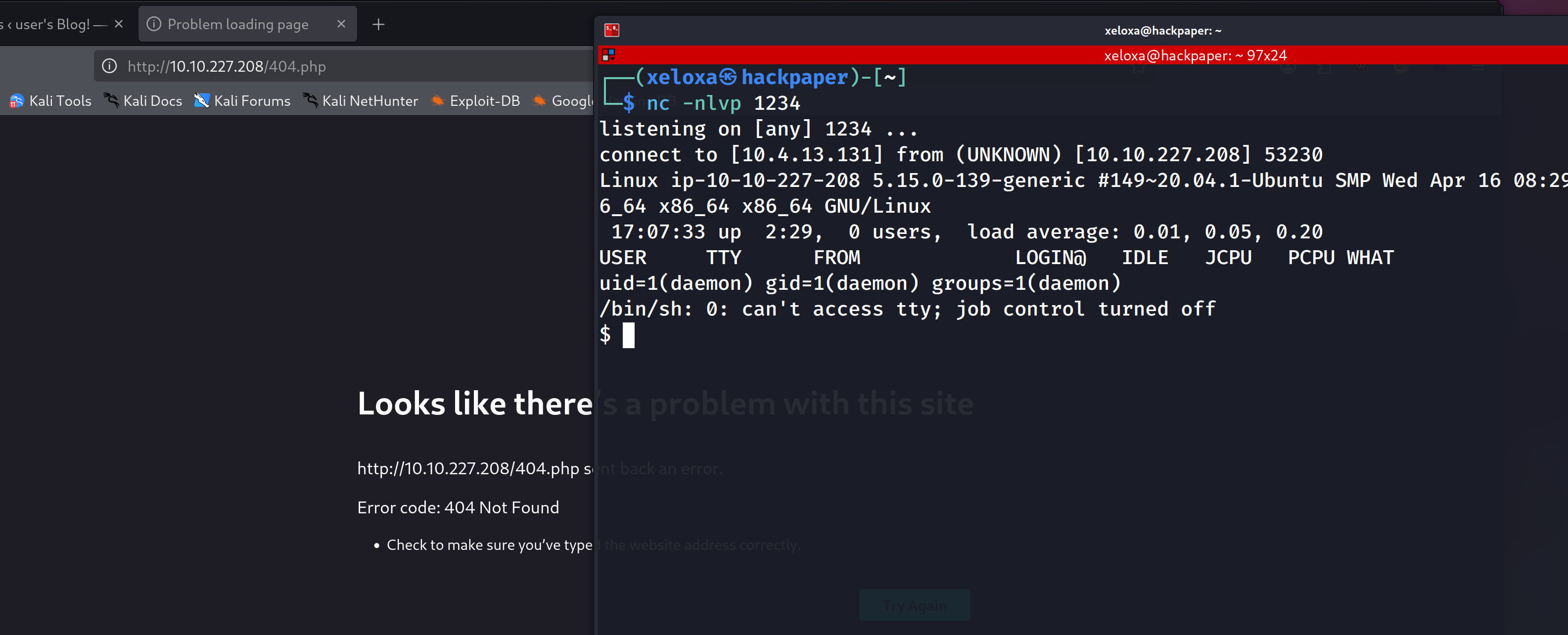 Now, let's paste this into the 404.php page and get our reverse shell.