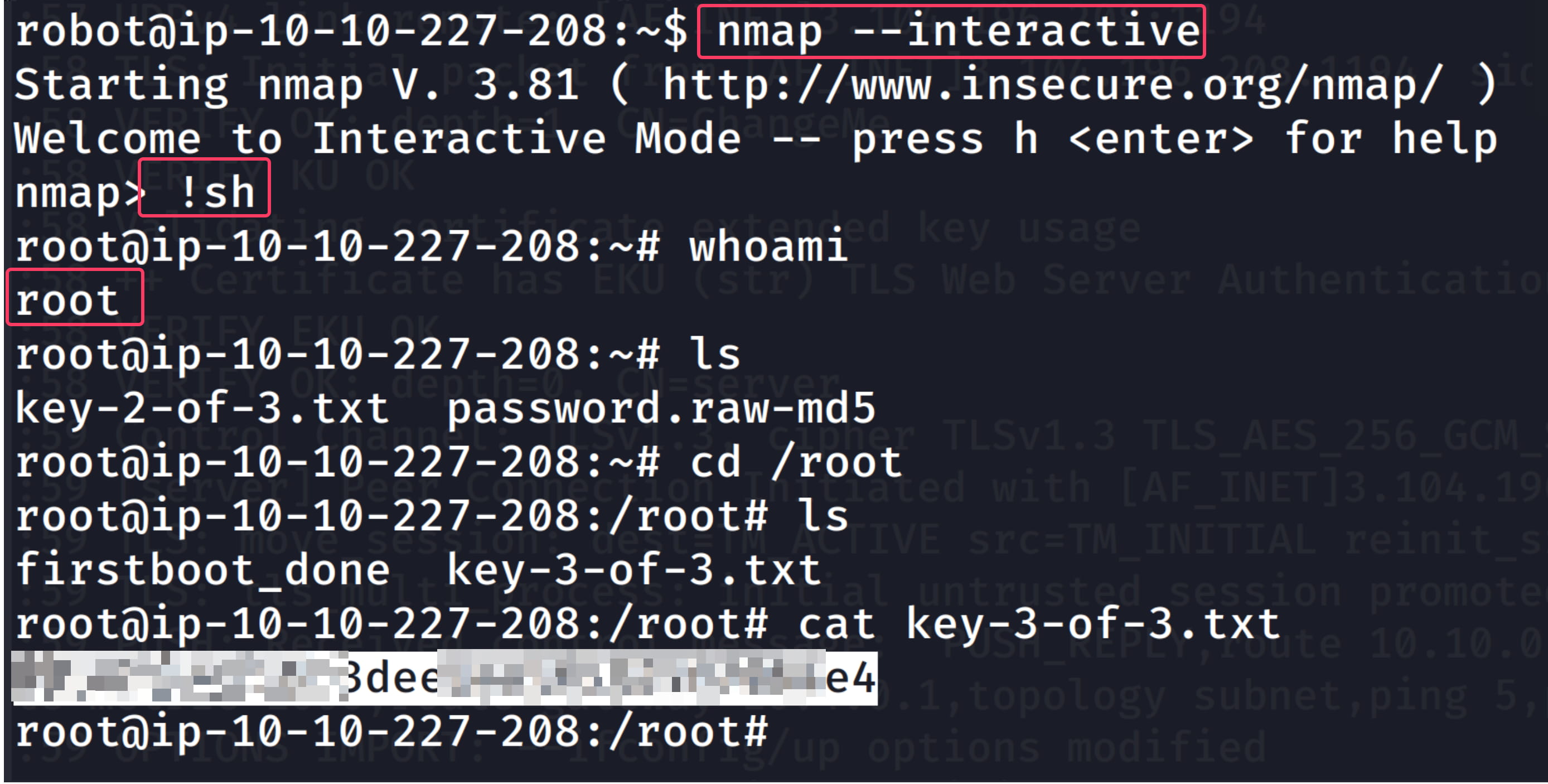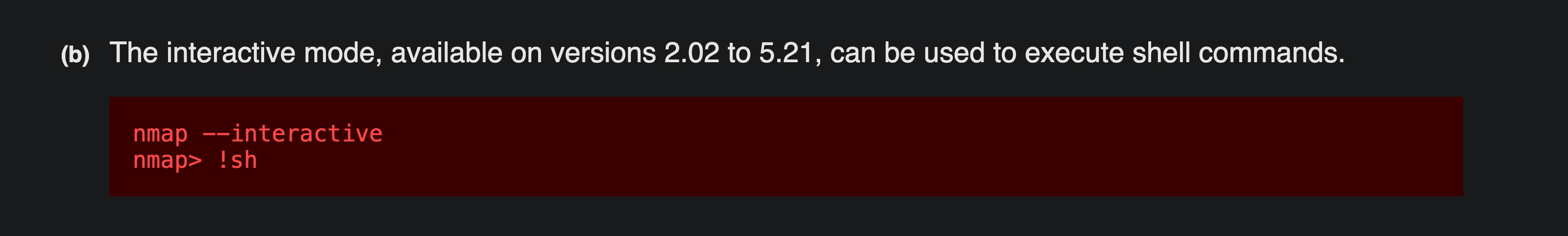 We learn how to get a shell from https://gtfobins.github.io/gtfobins/nmap/.