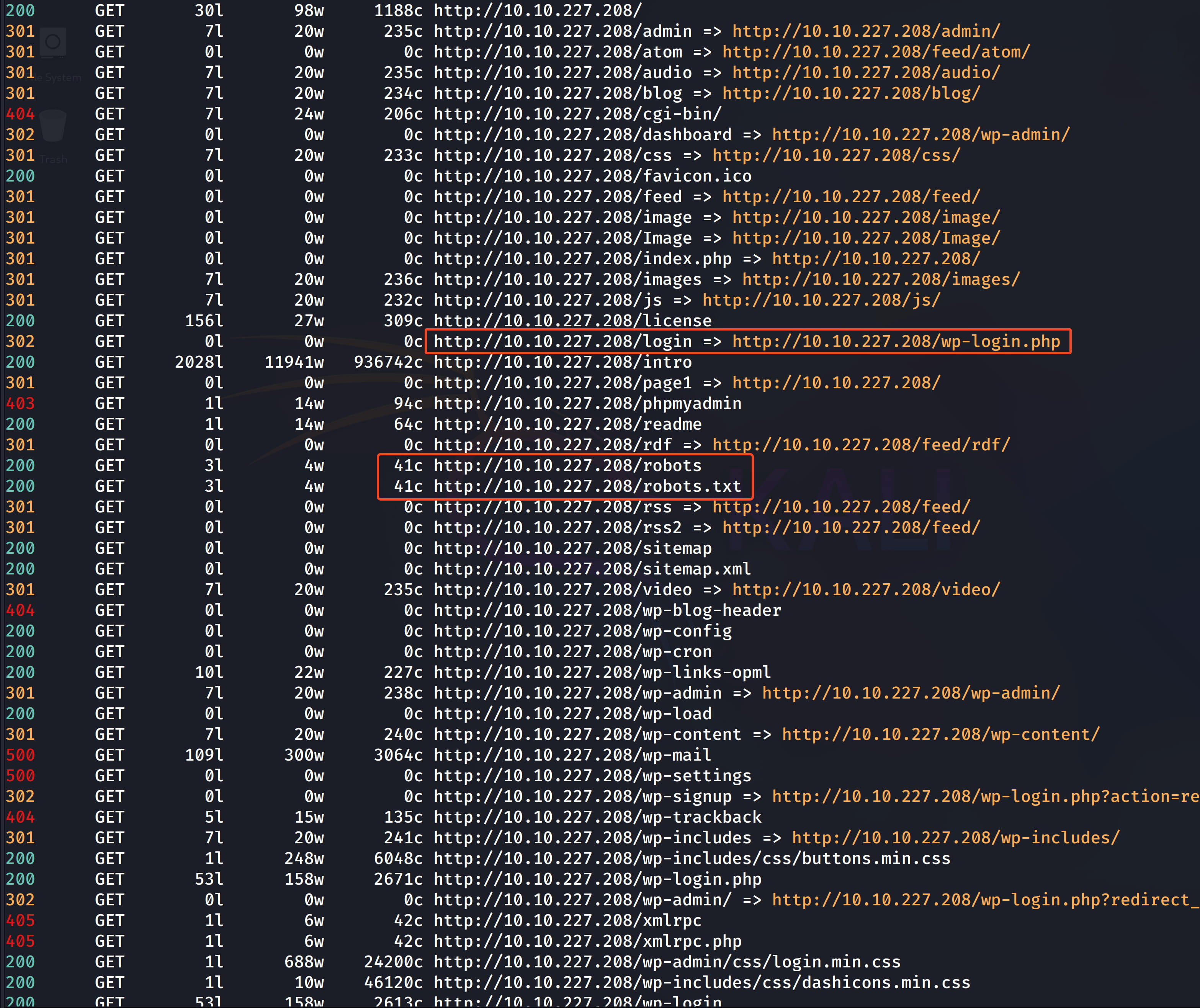 Here, the /robots and /wp-login pages catch our attention. From this, we understand that the site is running on WordPress.