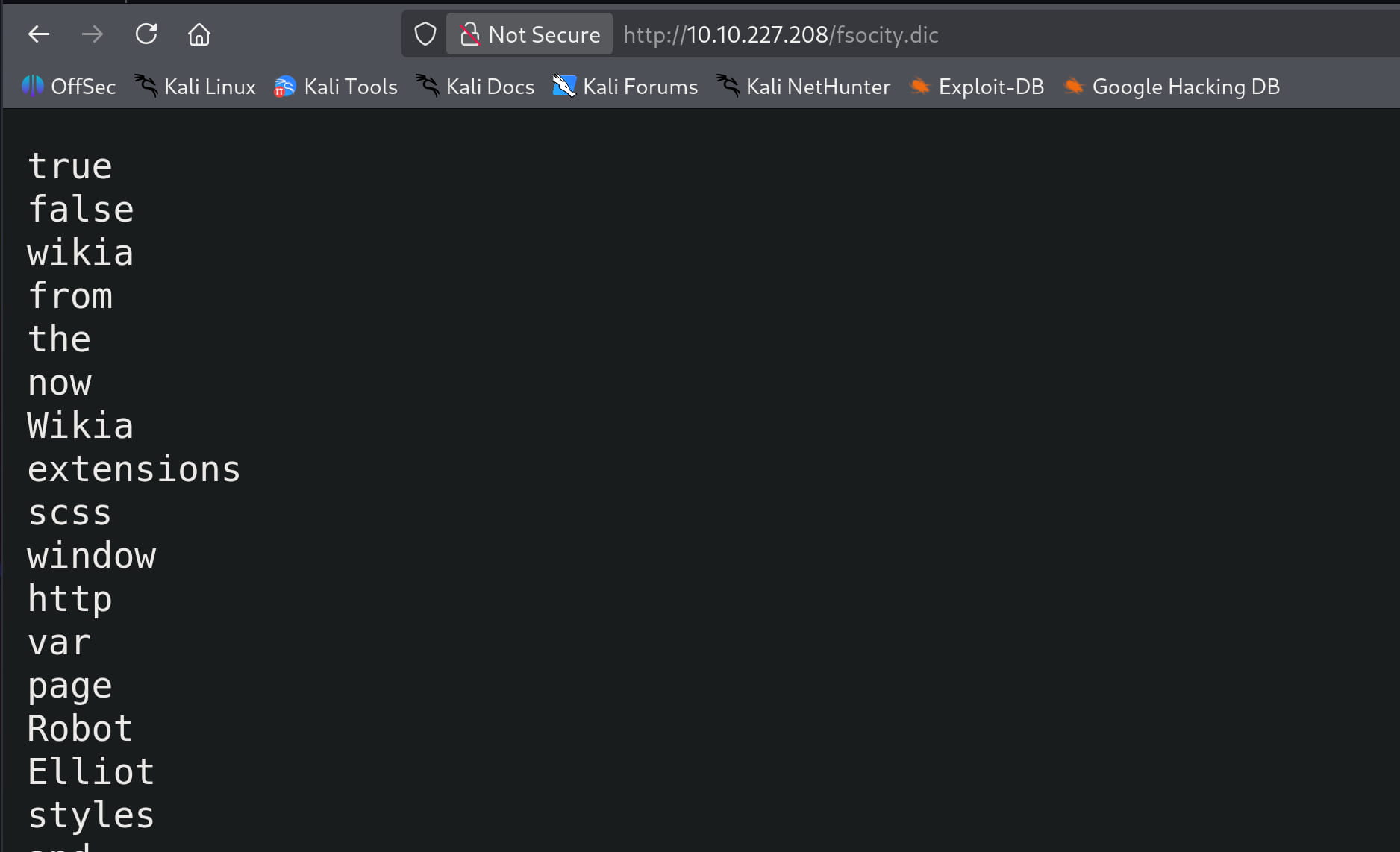 curl -o wordlist.txt http://10.10.227.208/fsocity.dic