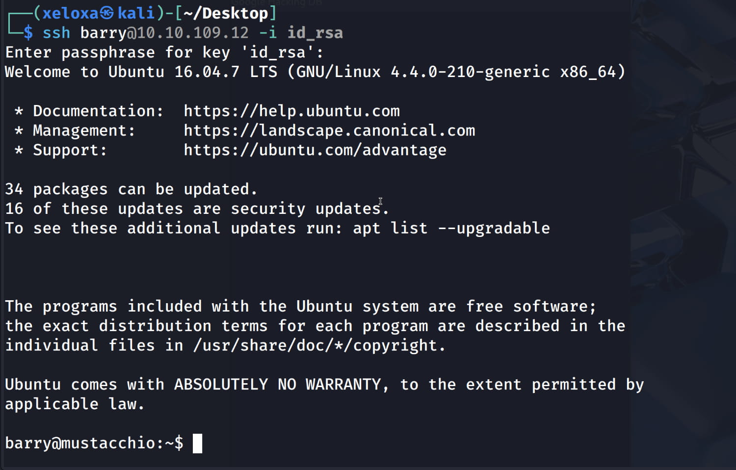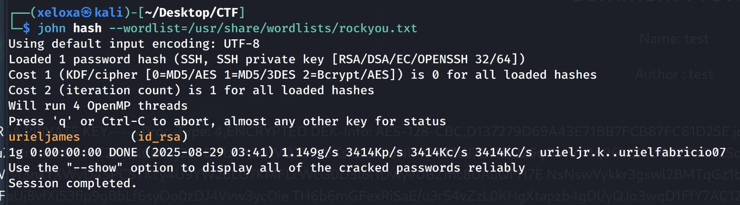urieljames)! Now, let's set the correct permissions for our key withchmod 600 id_rsaand connect via SSH.
