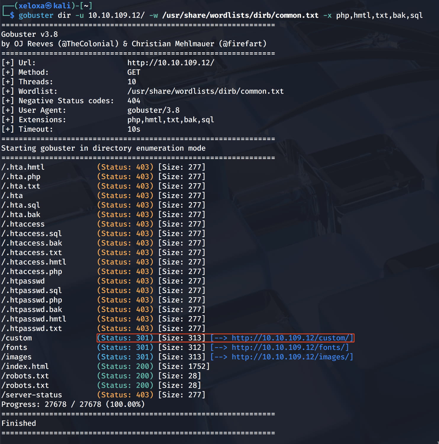 And we found a non-standard directory named /custom . Let's investigate it.