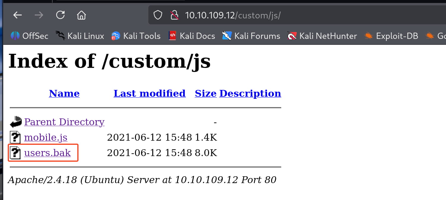 Here, the users.bak file catches our attention. Let's download it to our machine and check it; it might contain something valuable.