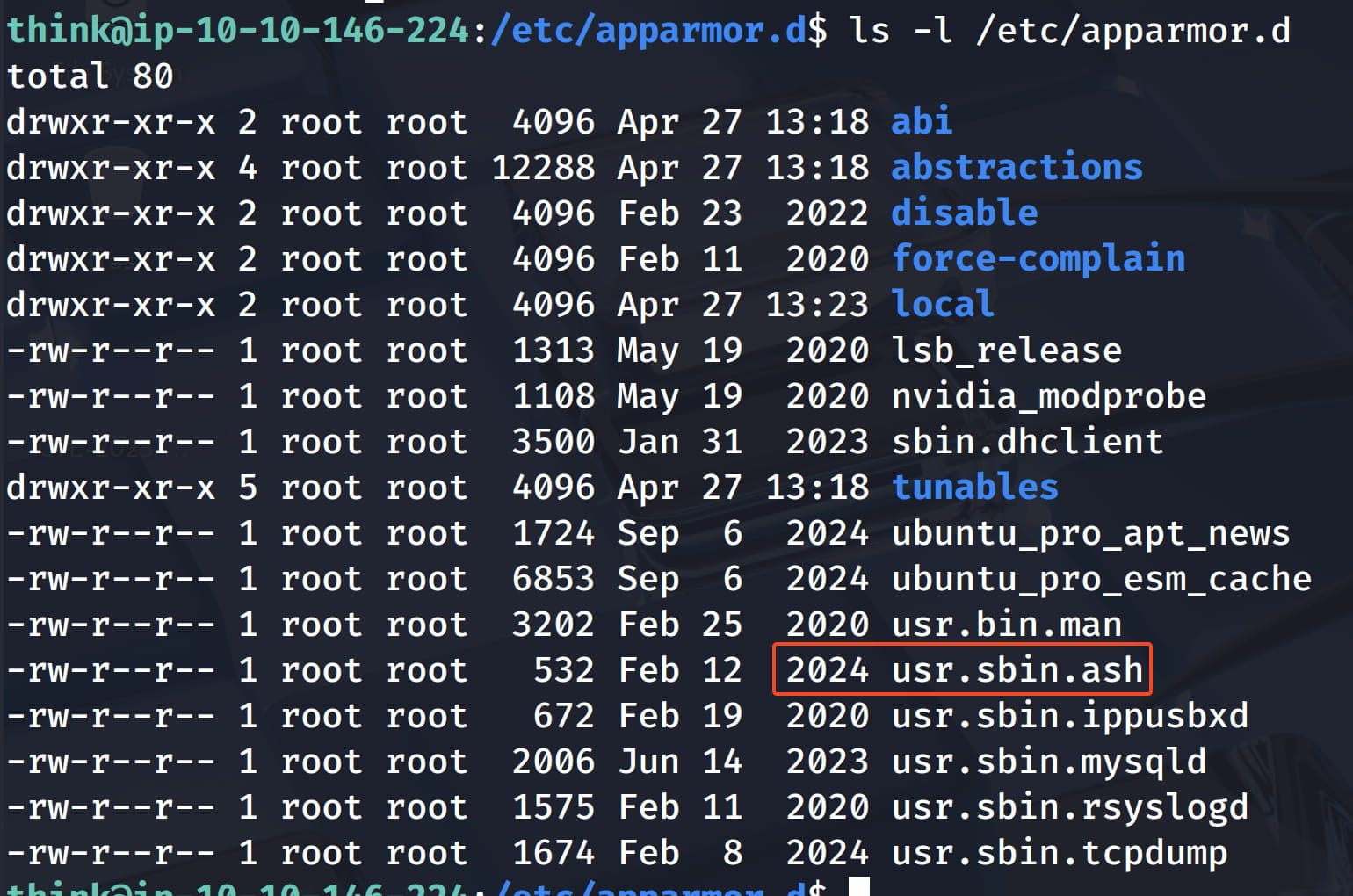 Here, usr.sbin.ash catches our attention. Ash is a lightweight shell interpreter like bash. And I think we are currently on the ash shell interpreter and that's why we are facing this restriction.