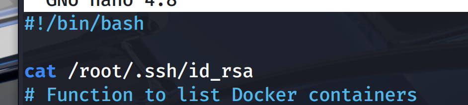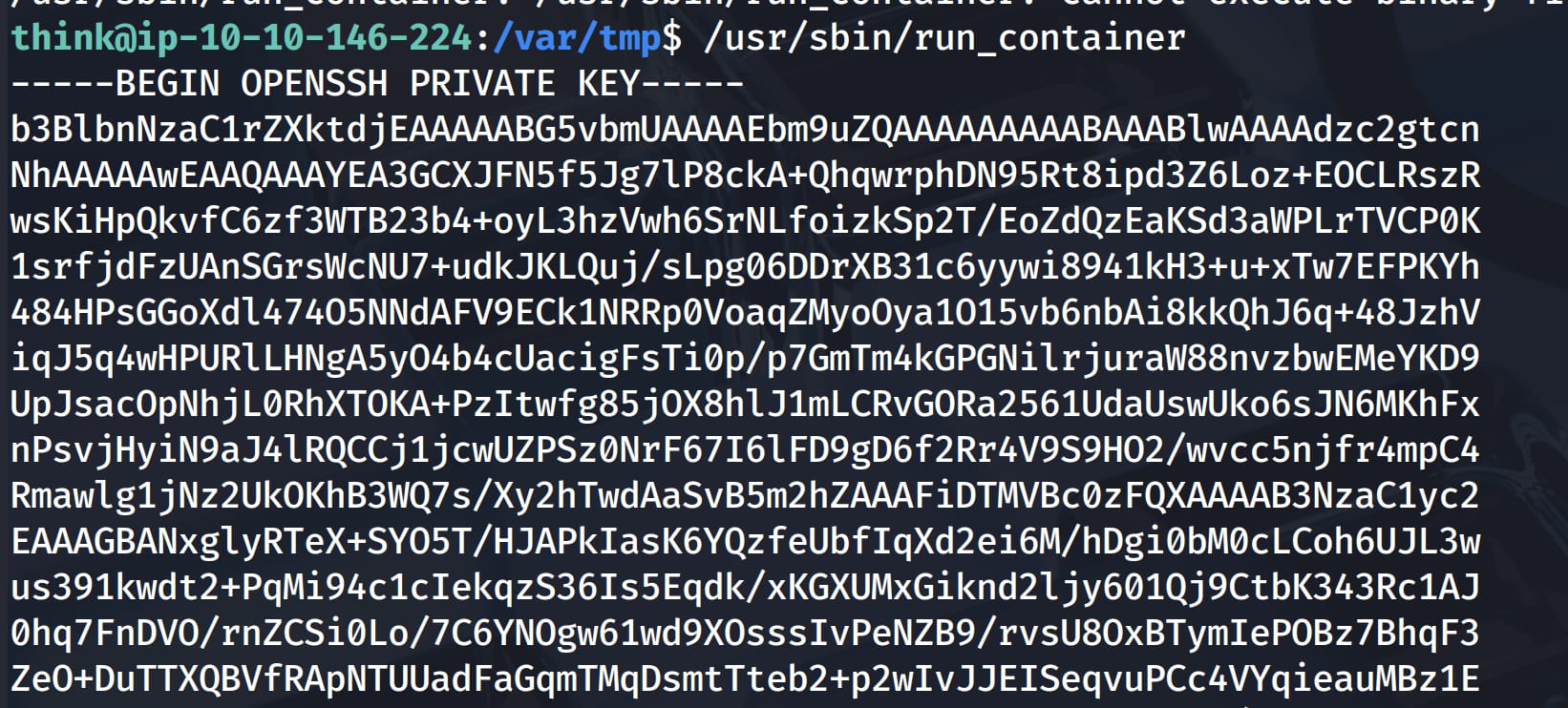 Now when we run /usr/bin/run_container with the suid bit set, it will go to /opt/run_container.sh and run the contents with root privileges and we will get the root's private key.